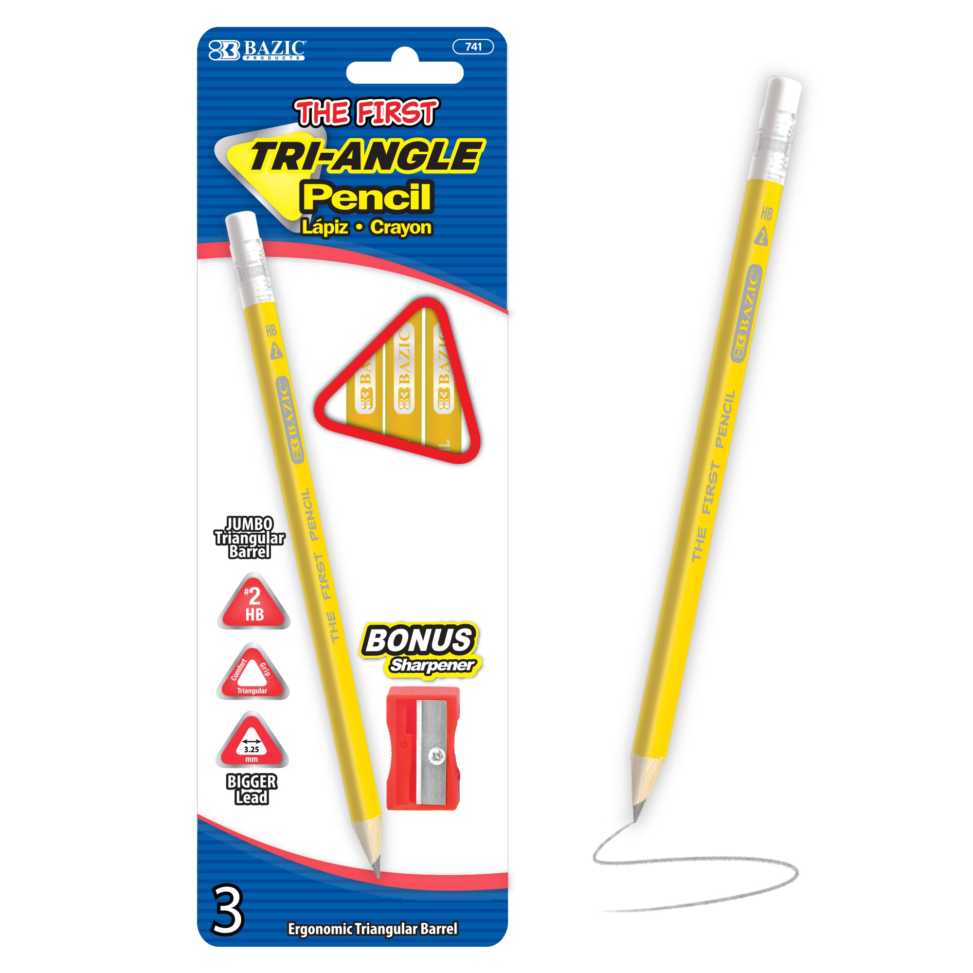 3 #2 The First Triangle Jumbo Yellow Pencil w/ Sharpener