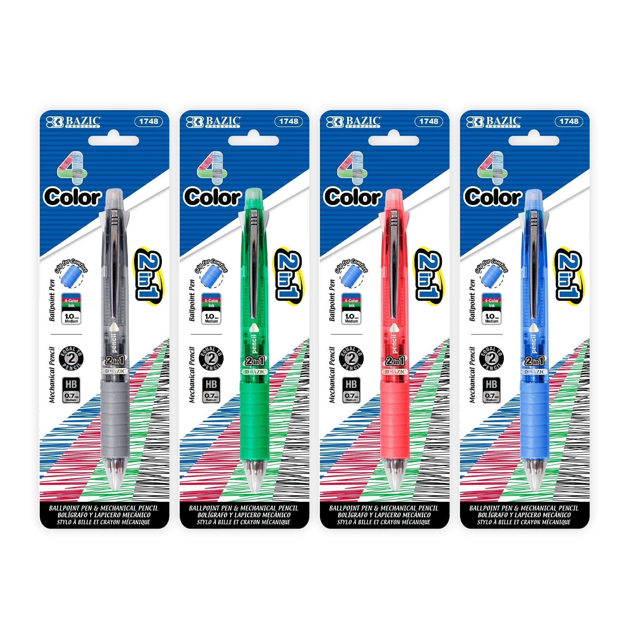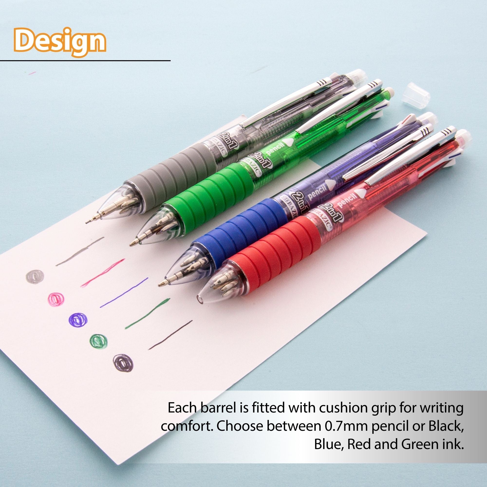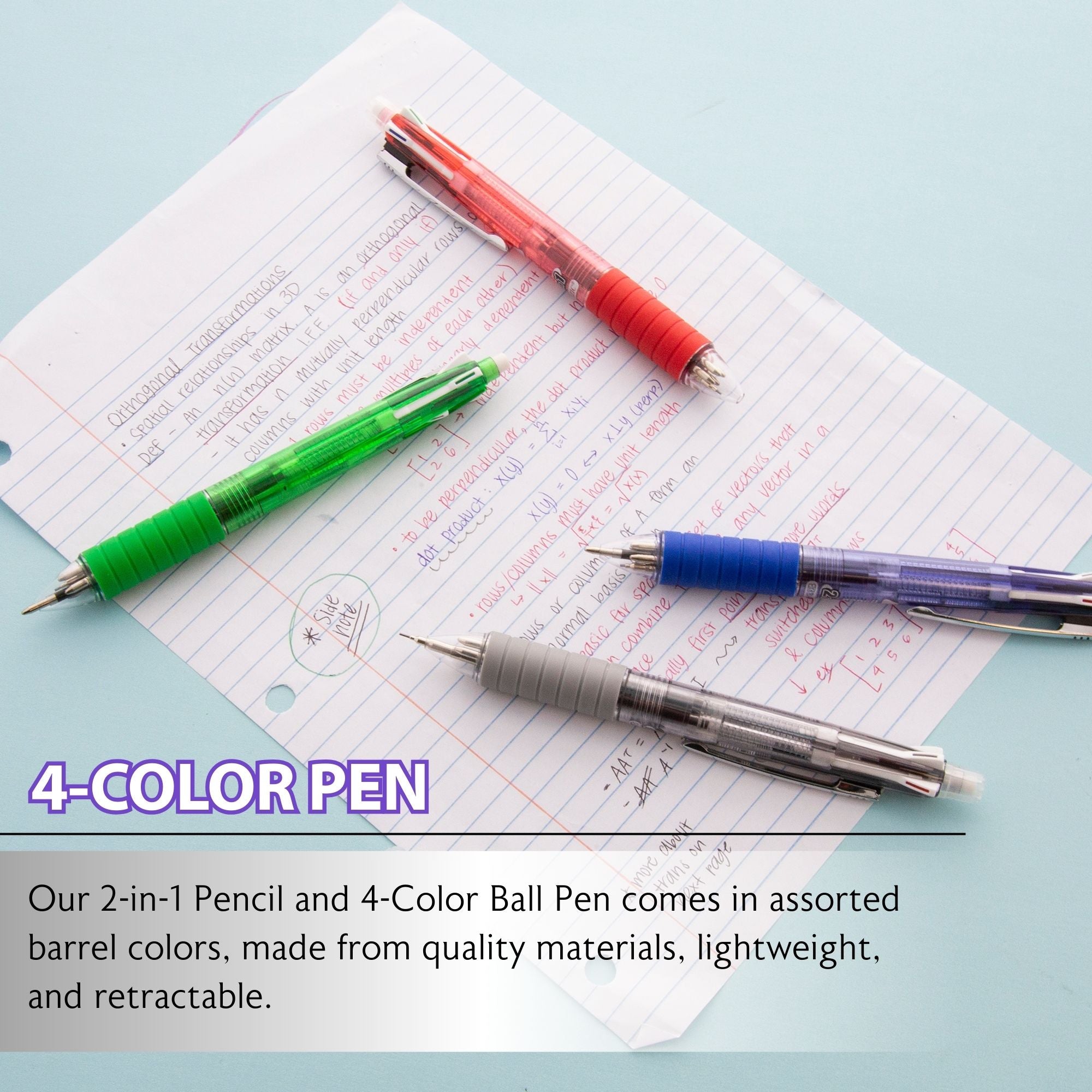 2-In-1 Mechanical Pencil & 4-Fashion Color Pen w/ Cushion Grip