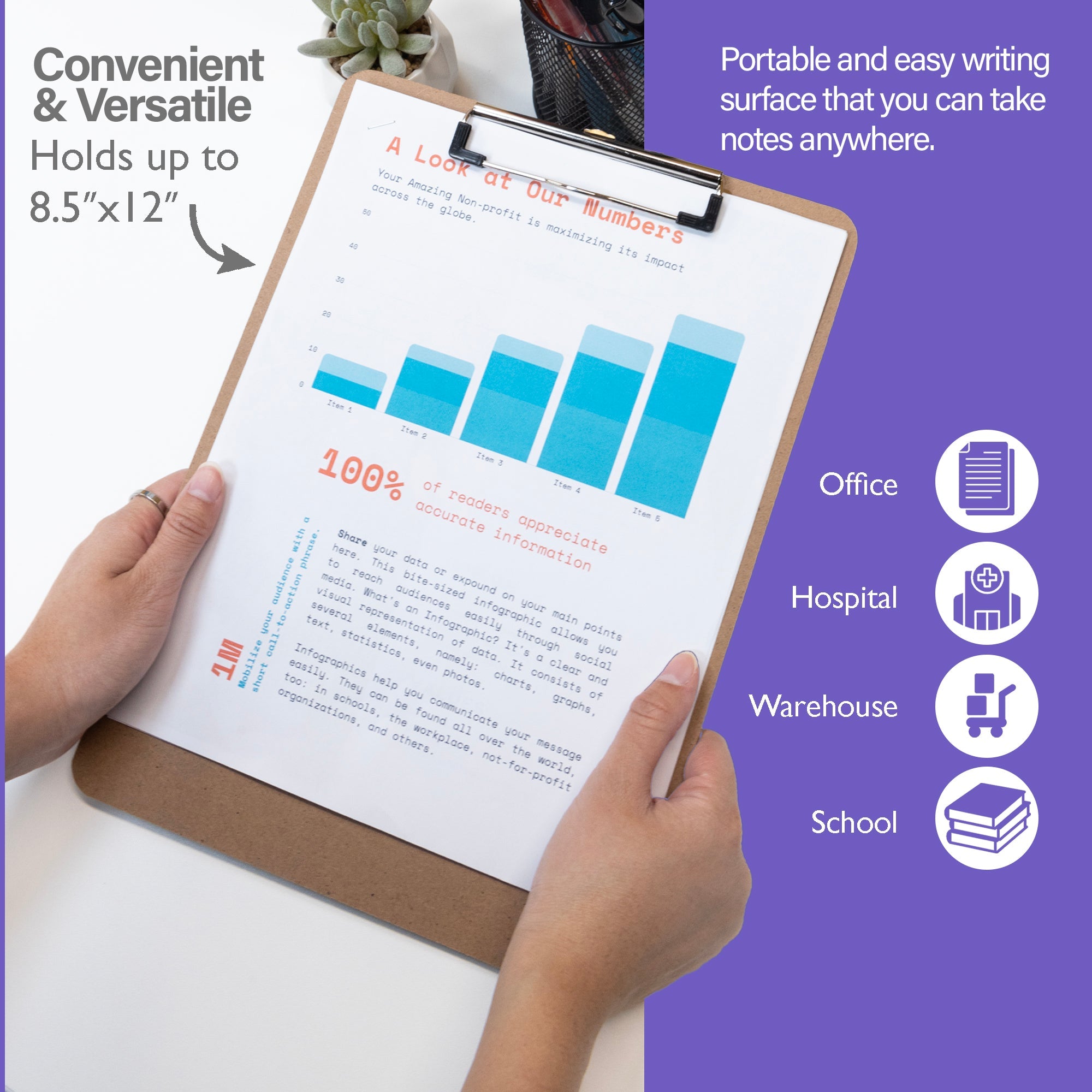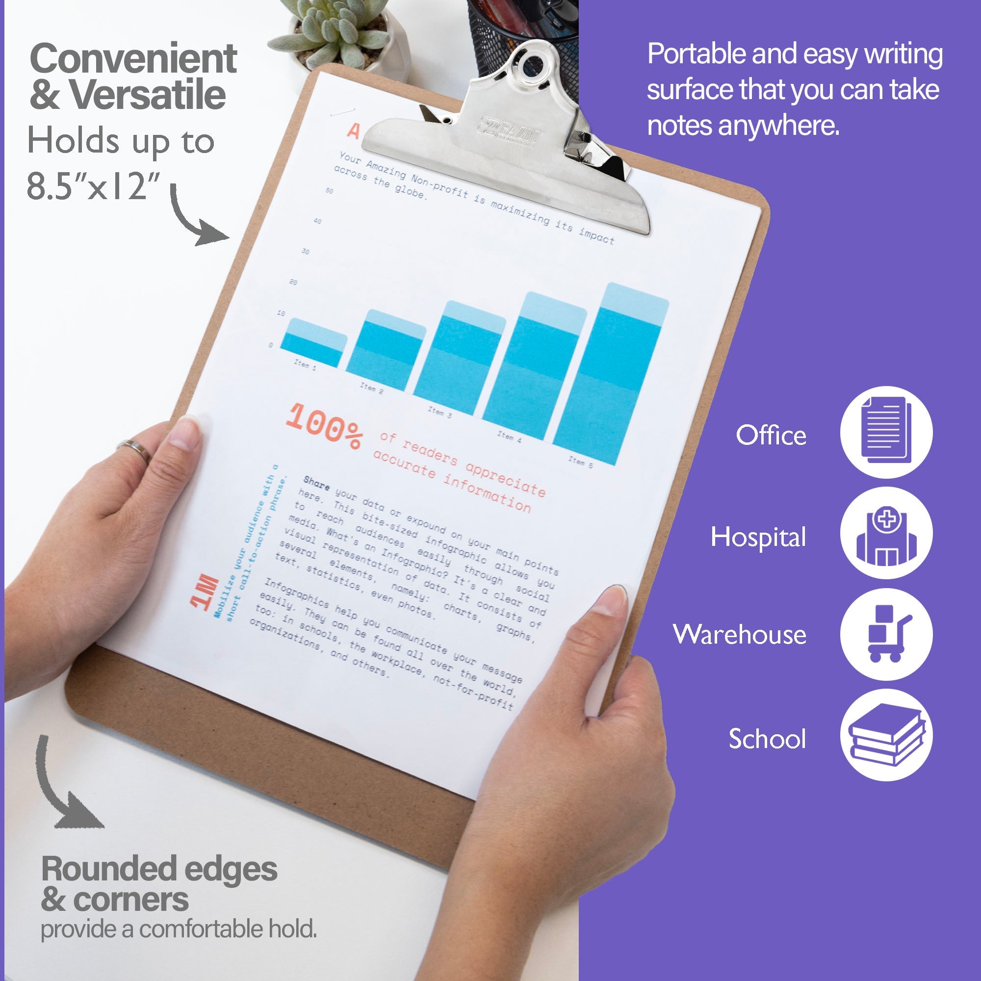 Hardboard Clipboard Standard Size w/ Sturdy Spring Clip