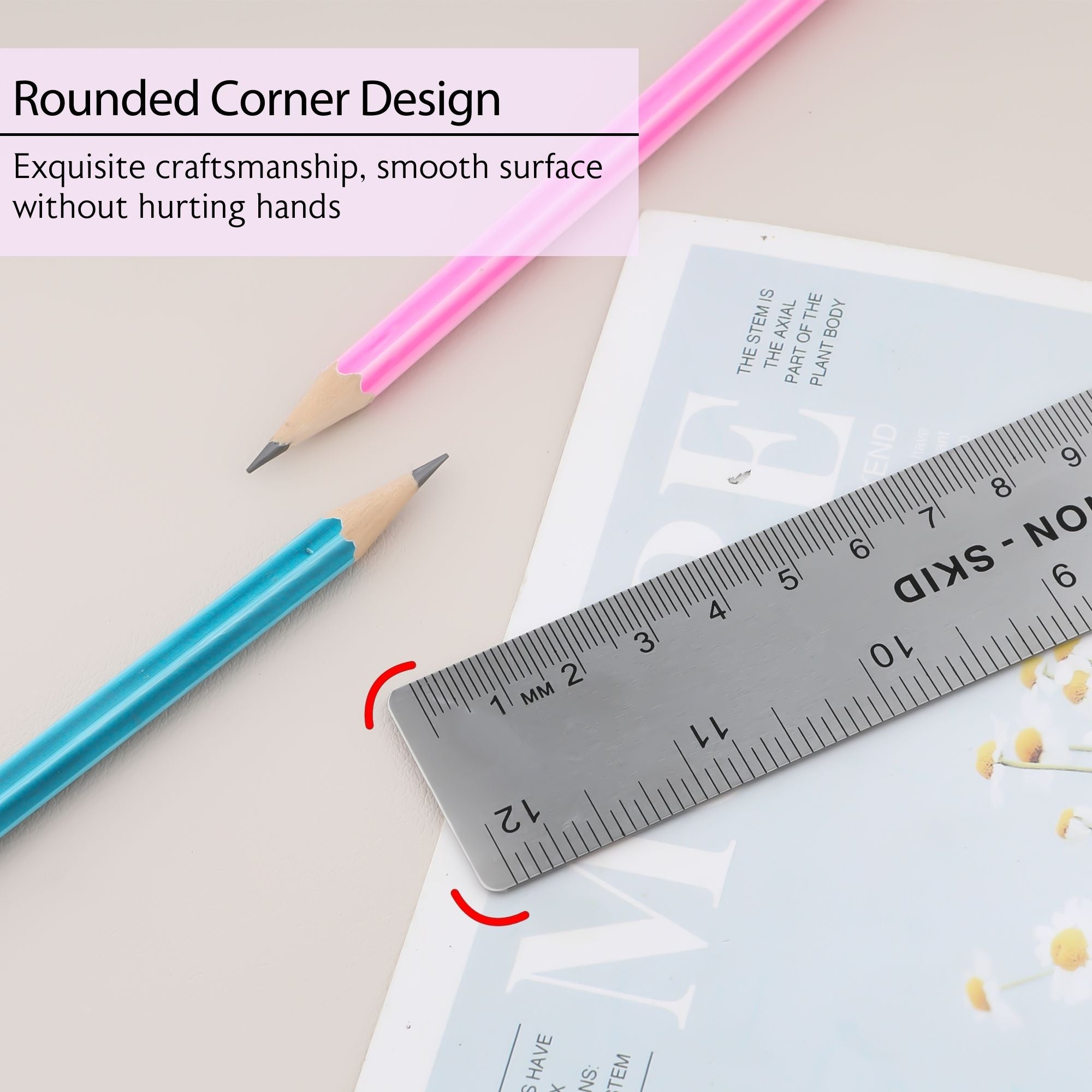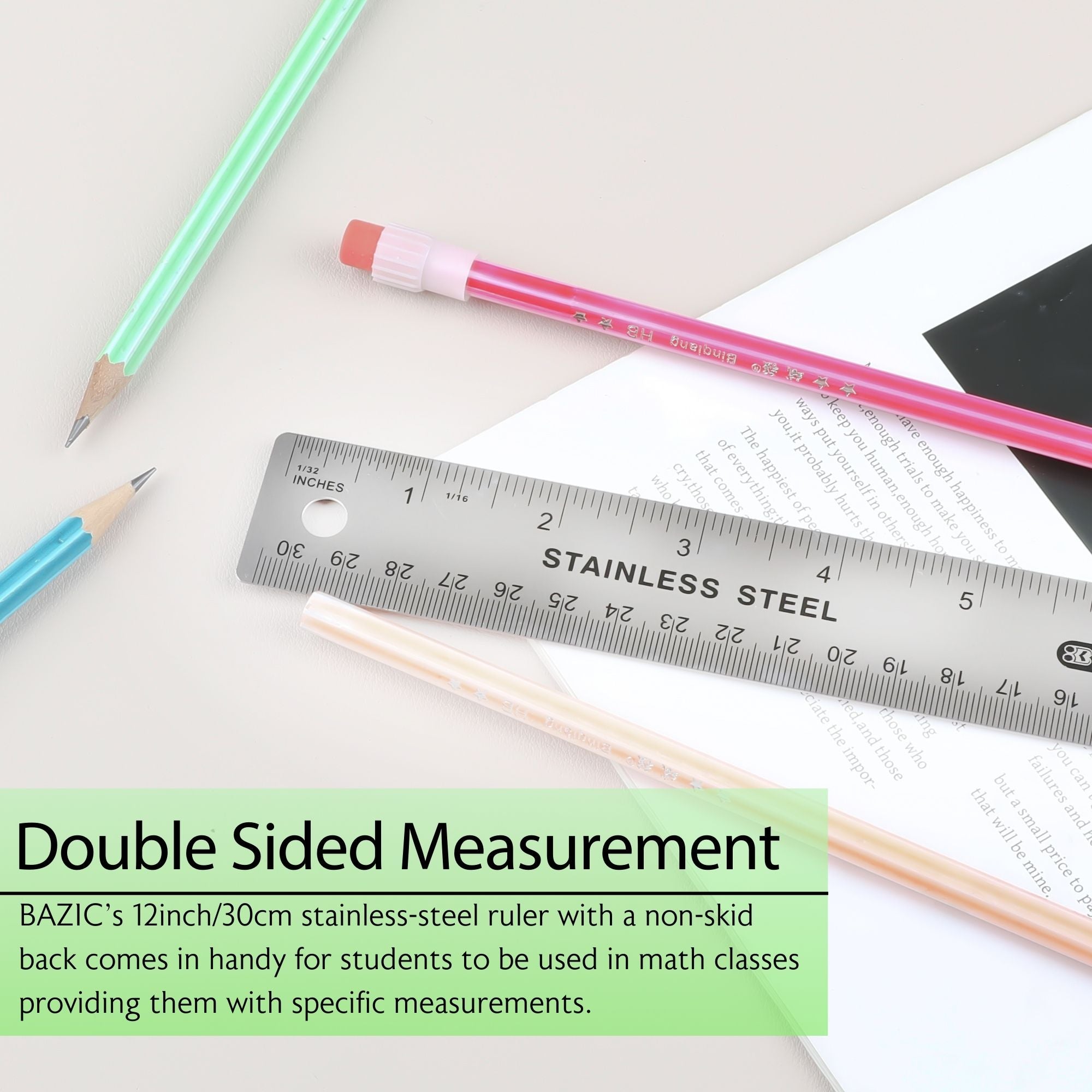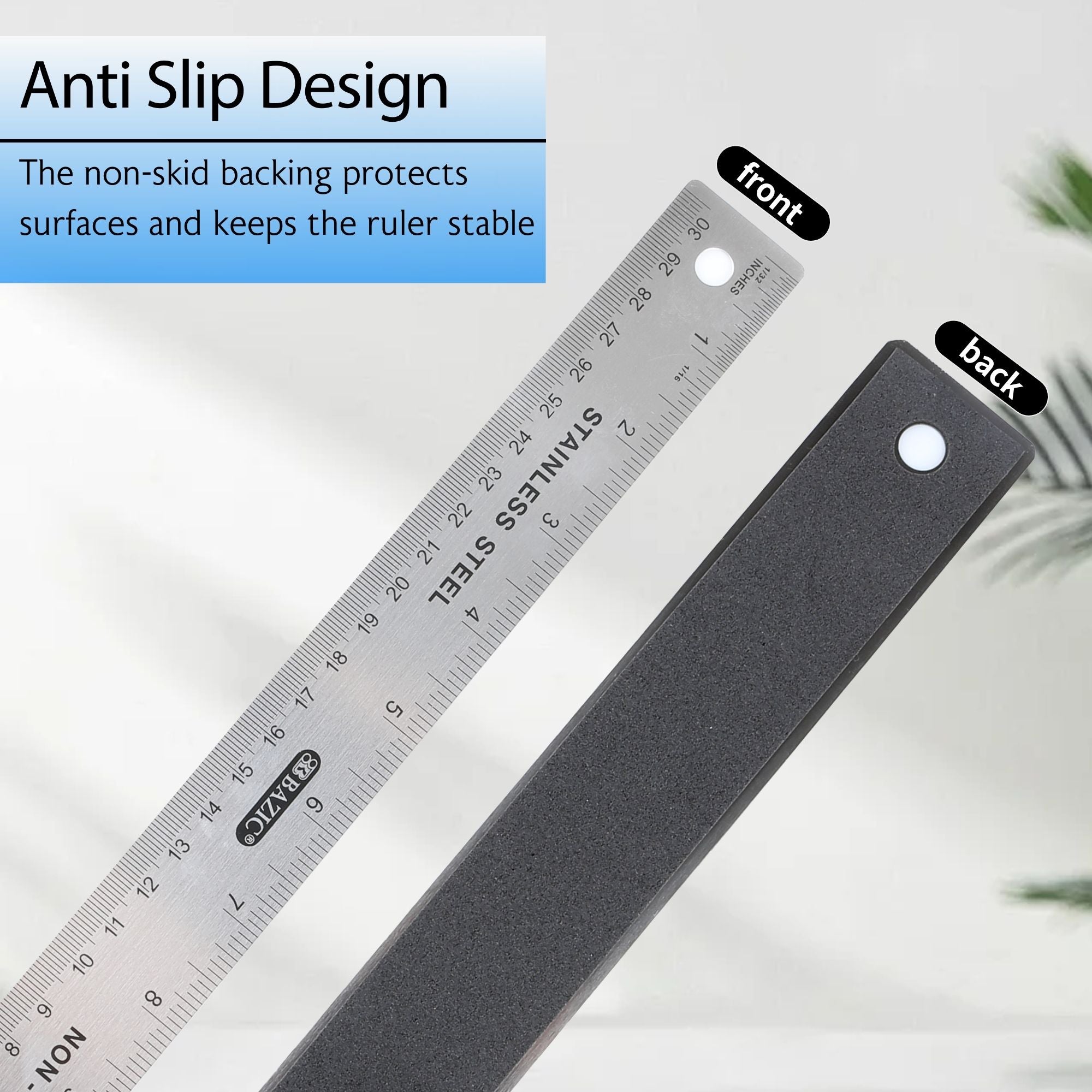 12" (30cm) Stainless Steel Ruler w/ Non Skid Back