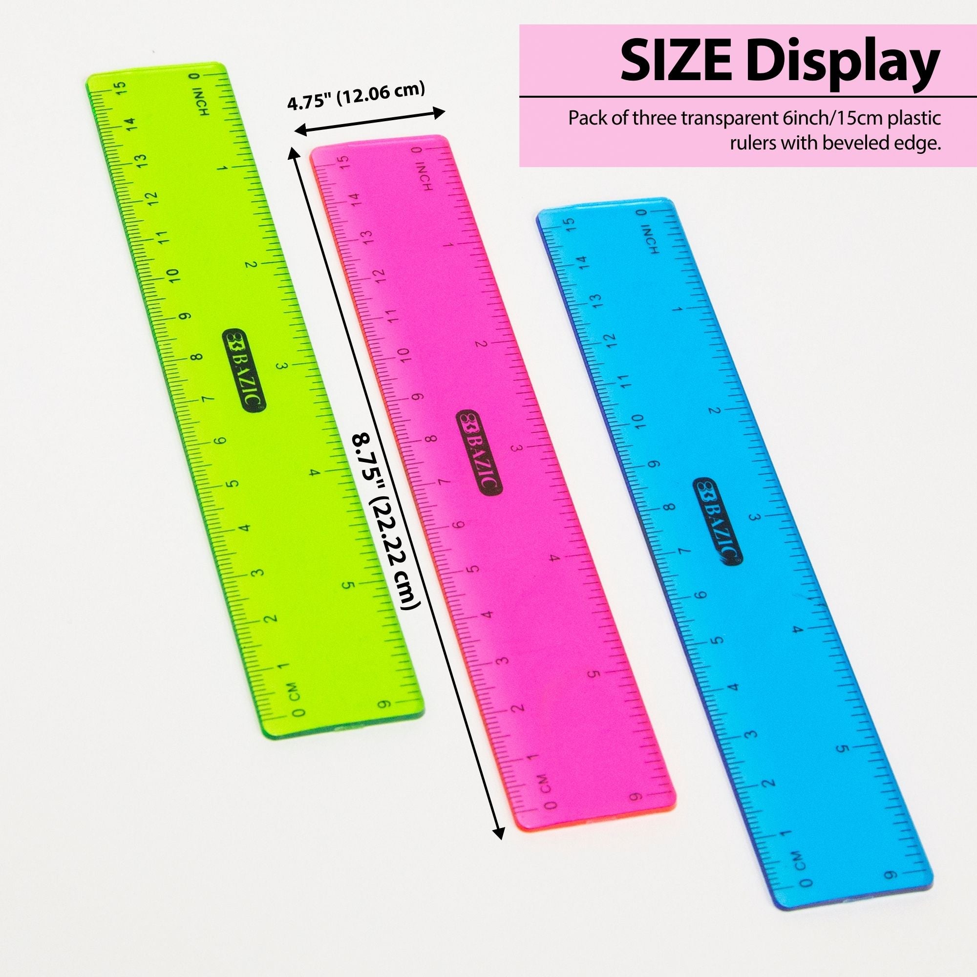 6" (15cm) Plastic Ruler (3/Pack)