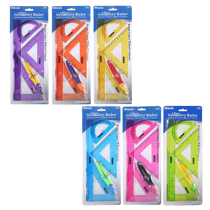 Geometry Ruler Combination Sets 4-Piece w/ Compass