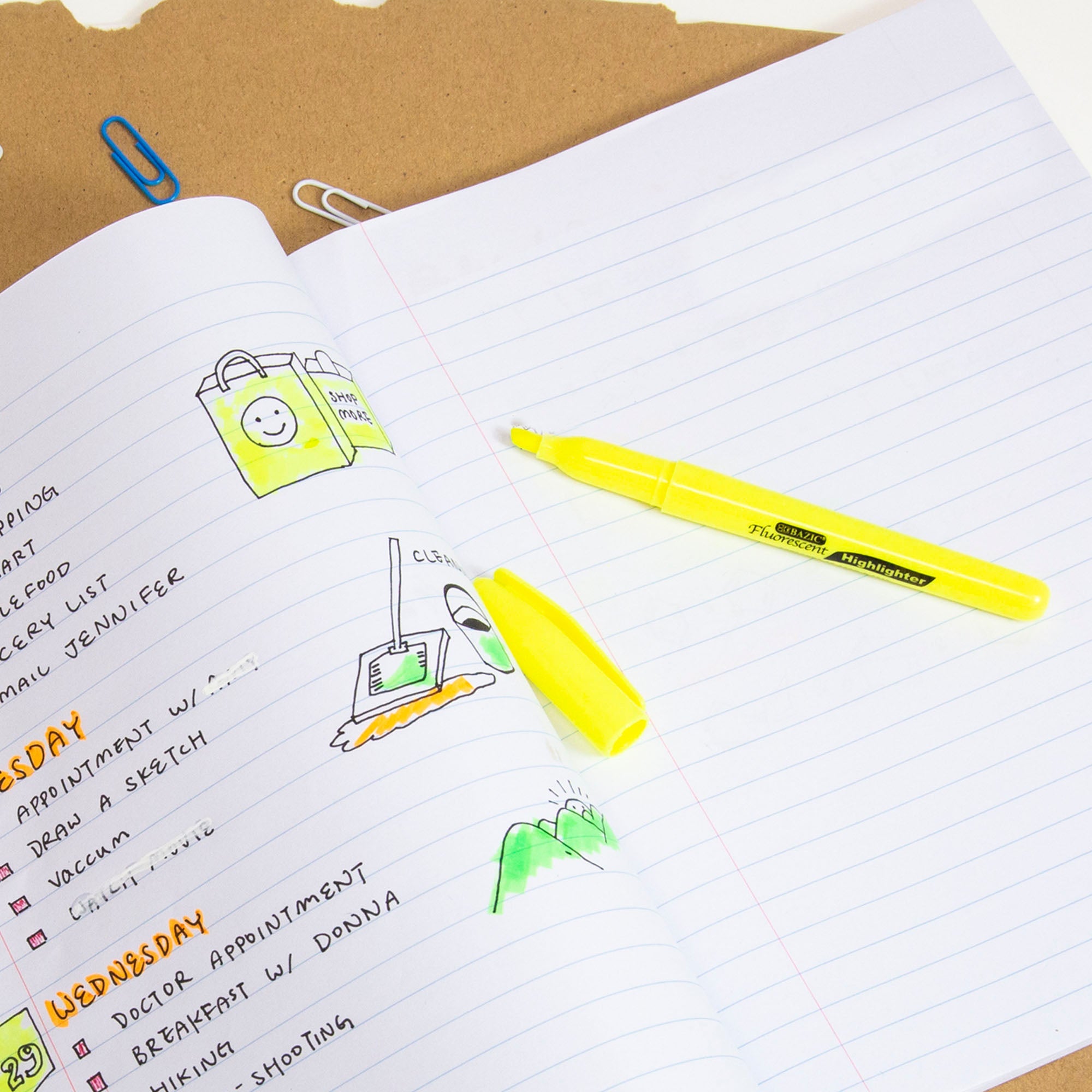 Fluorescent Highlighter Yellow w/ Pocket Clip (12/Pack)