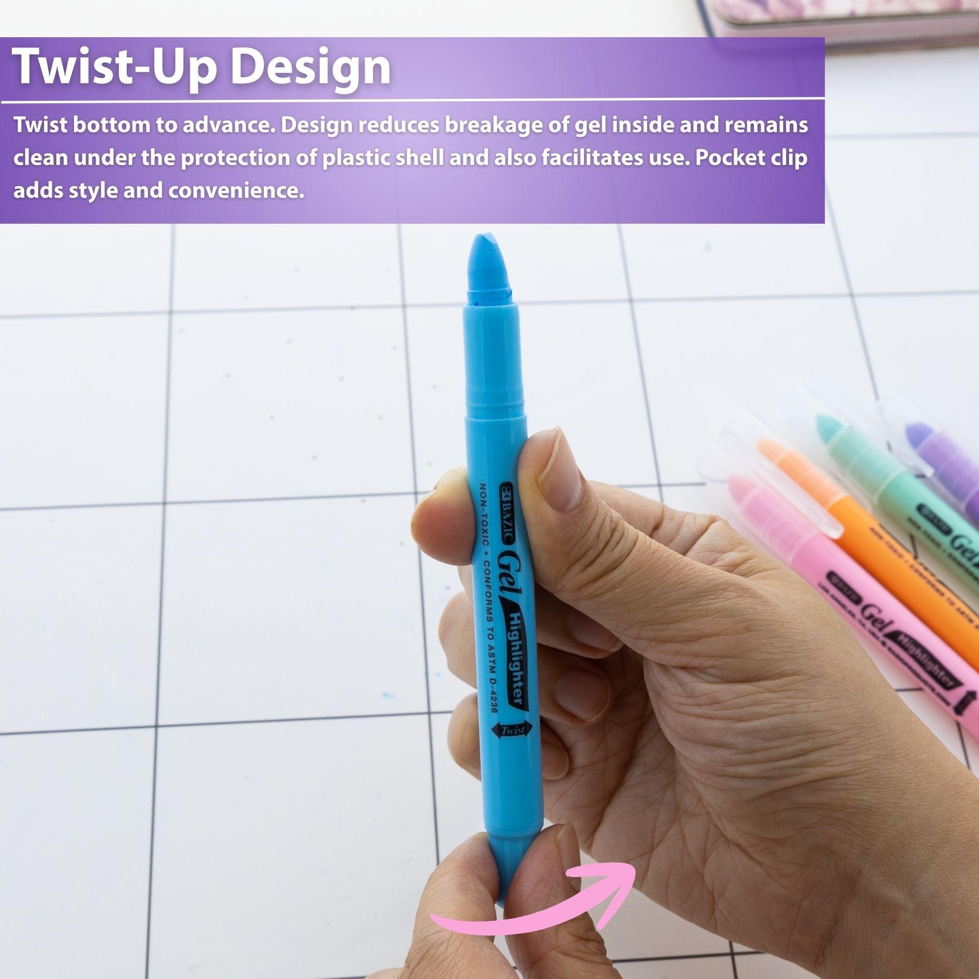 Pen Style Pastel Highlighters w/ Pocket Clip (5/Pack)
