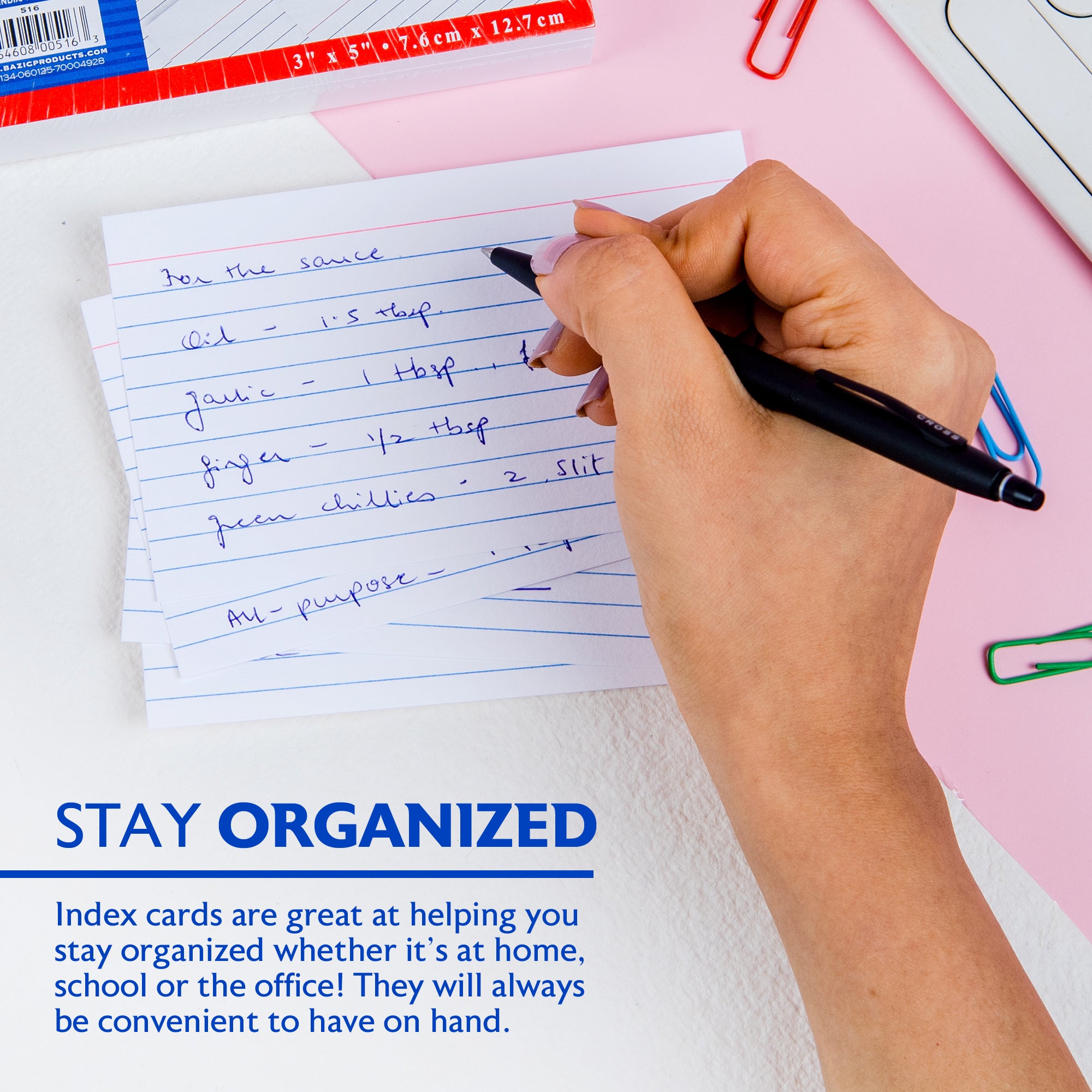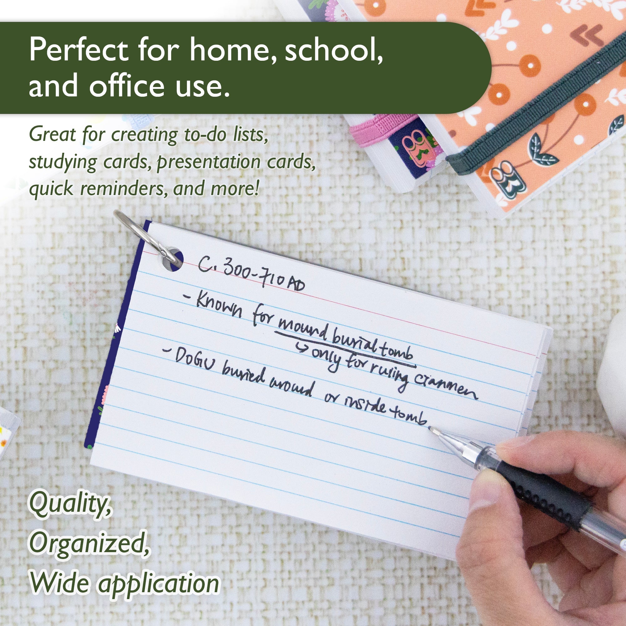 Ruled White Index Card Poly Cover w/ Ring 3" x 5" 100 Ct.