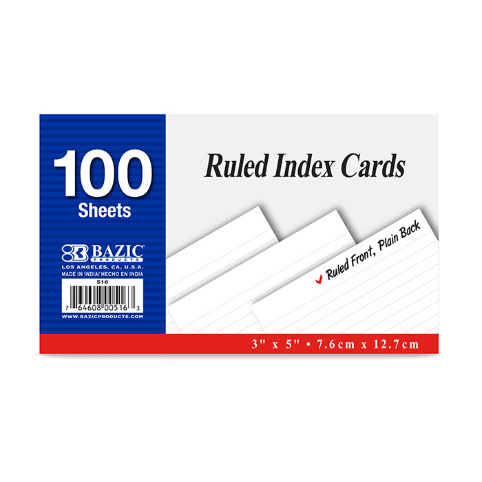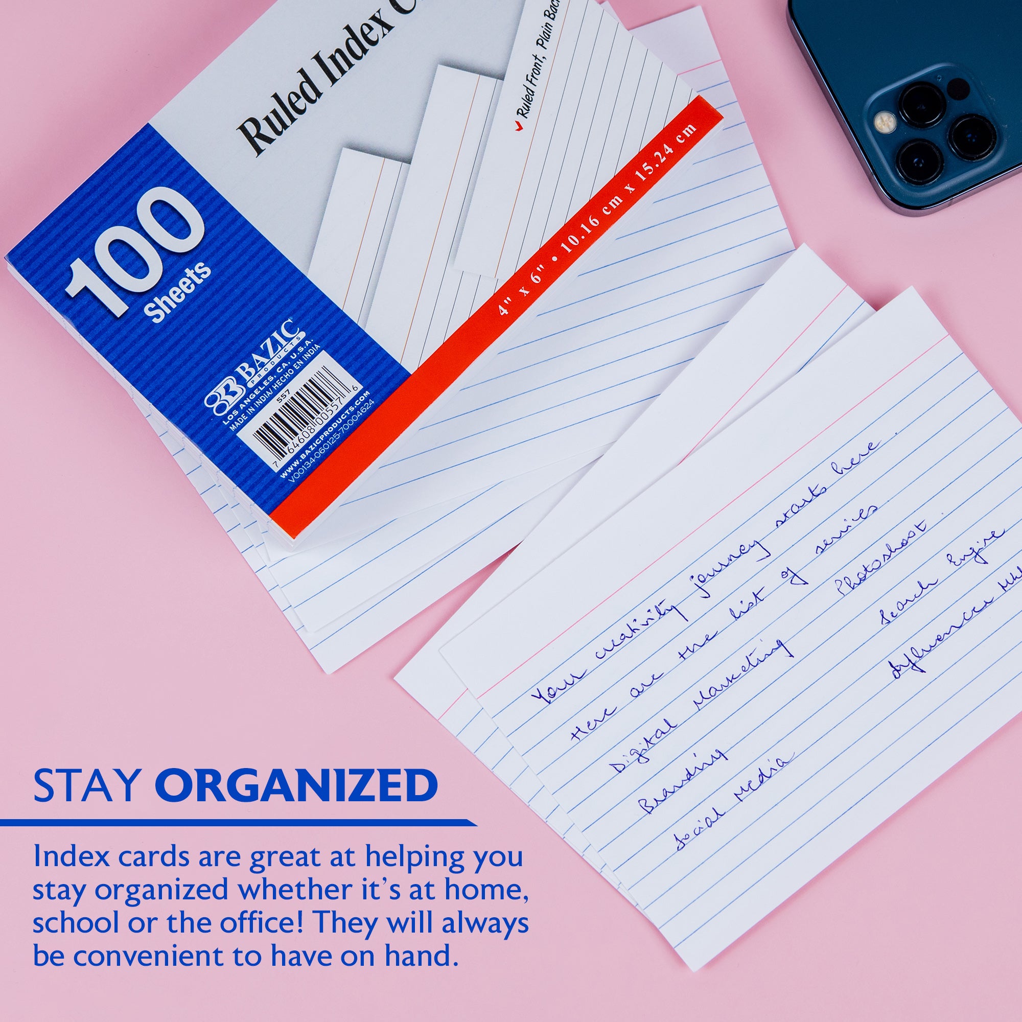 Ruled Colored Index Card 3" X 5" 100 Ct.