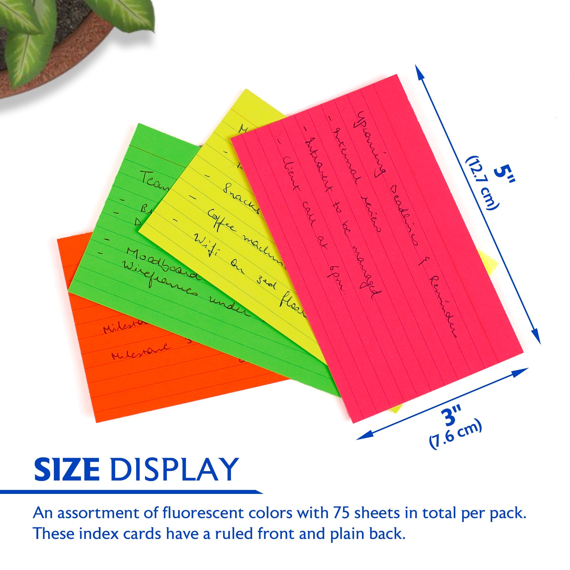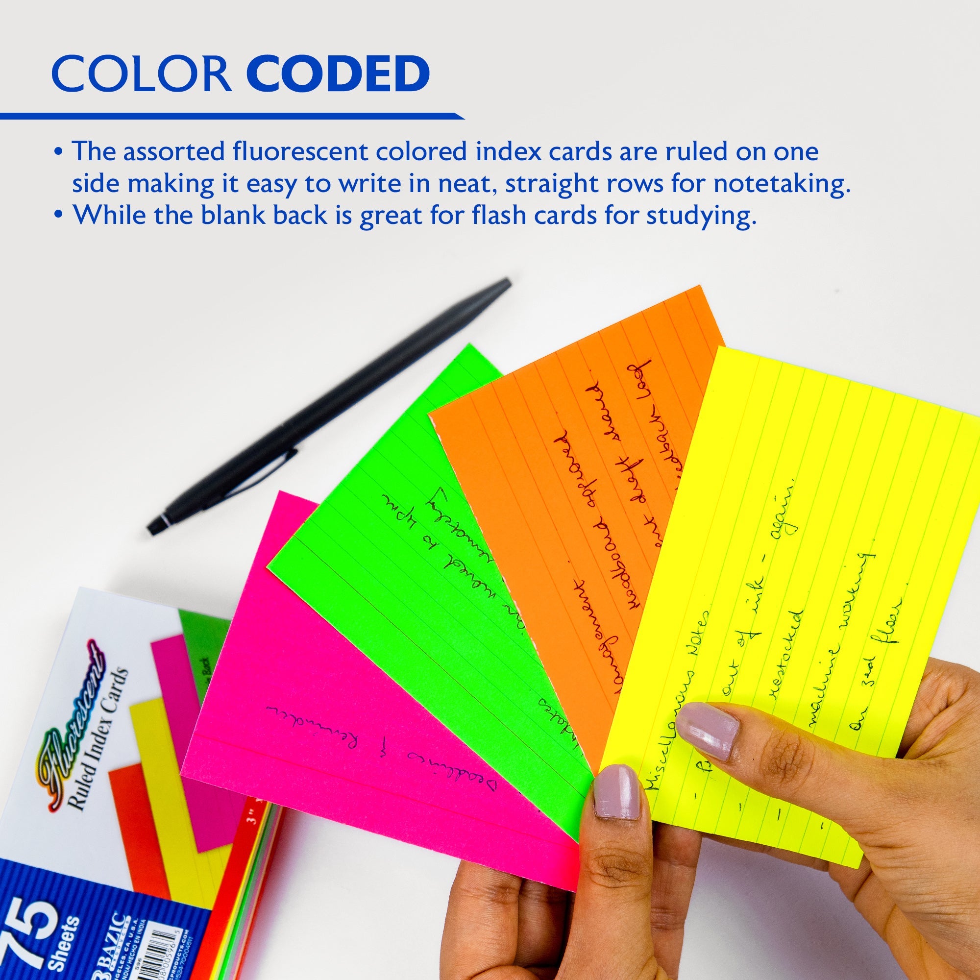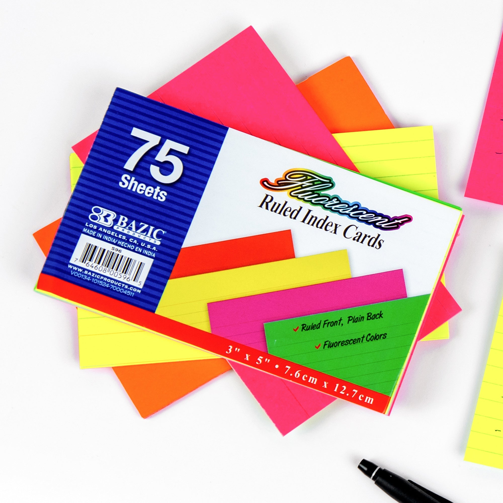 Ruled Fluorescent Colored Index Card 3" X 5" 75 Ct.