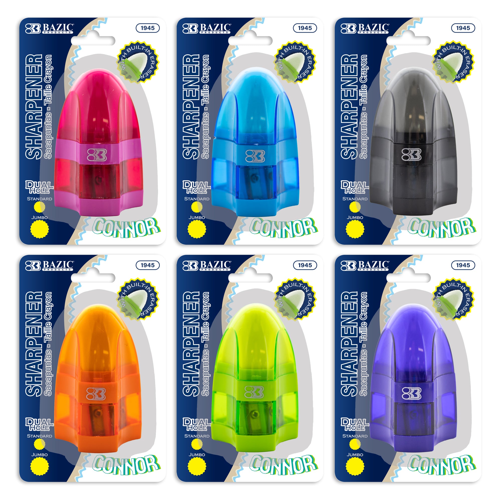 Connor Dual Hole Sharpener w/ Receptacle + Eraser