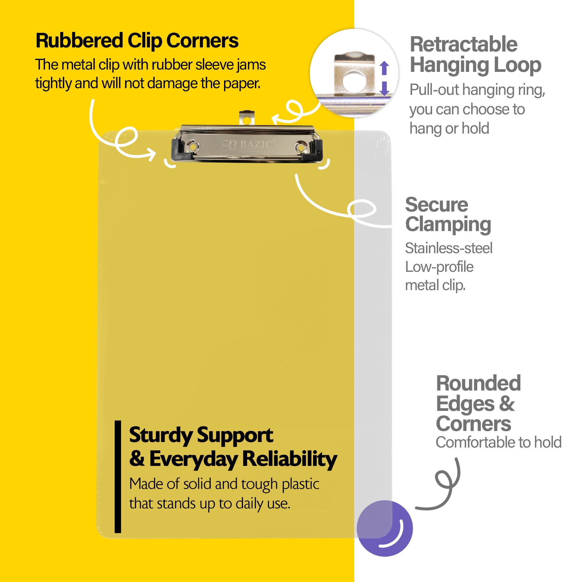 Standard Size Clear Plastic Clipboard w/ Low Profile Clip