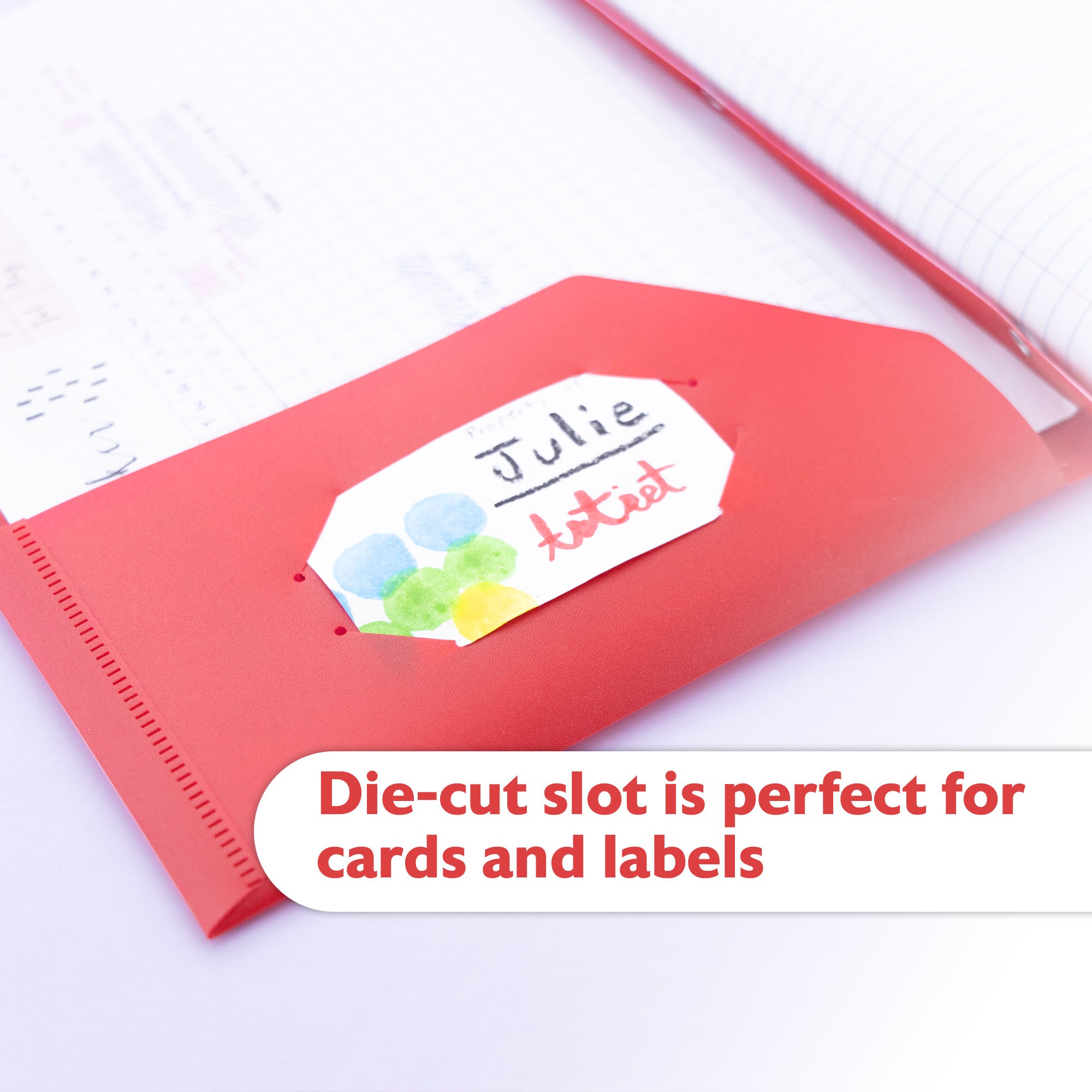 Poly 2-Pockets Portfolio - Red Color w/ 3-Prong Fastener