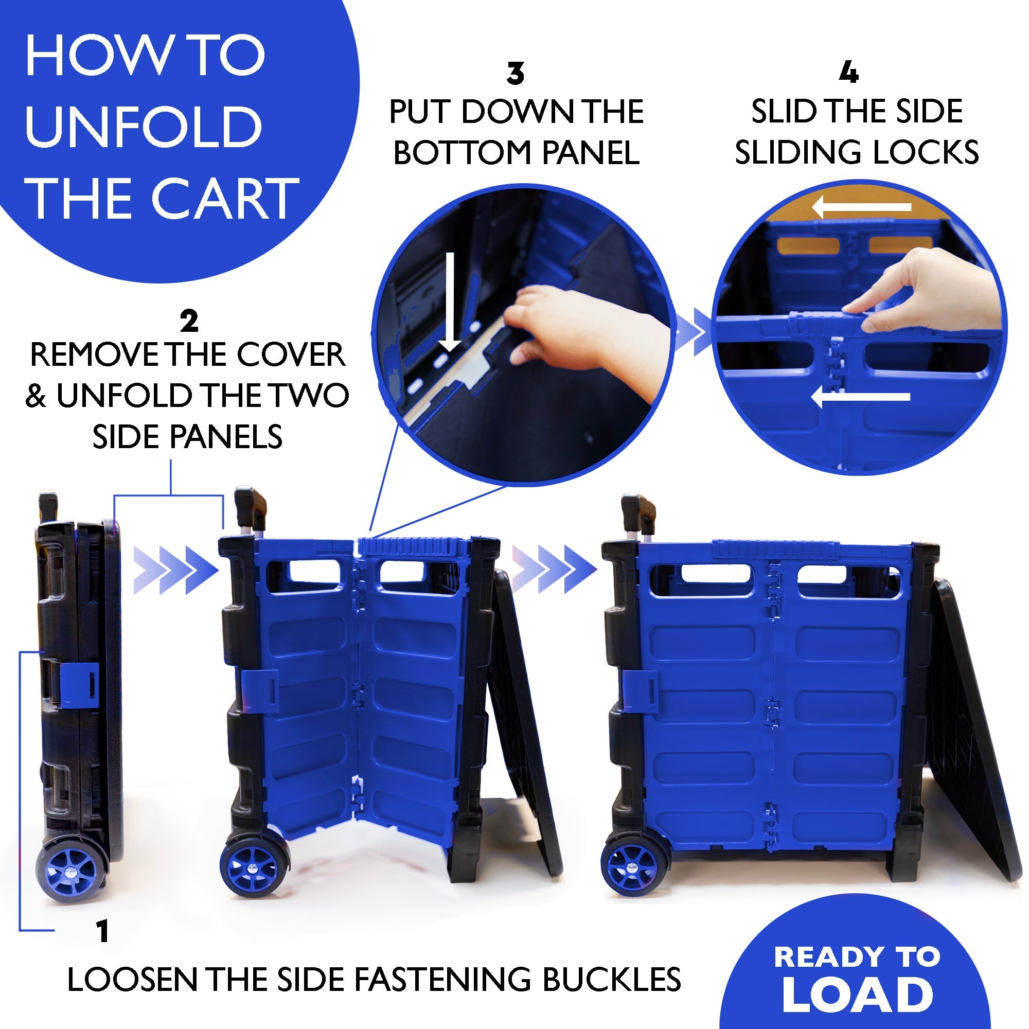 Foldable Rolling Cart w/ Lid Cover Blue 16" X 18" X 15"