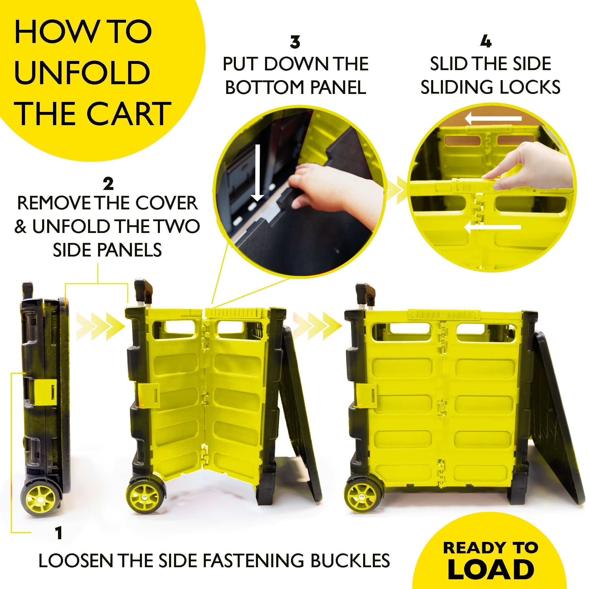 Foldable Rolling Cart w/ Lid Cover Yellow 16" X 18" X 15"