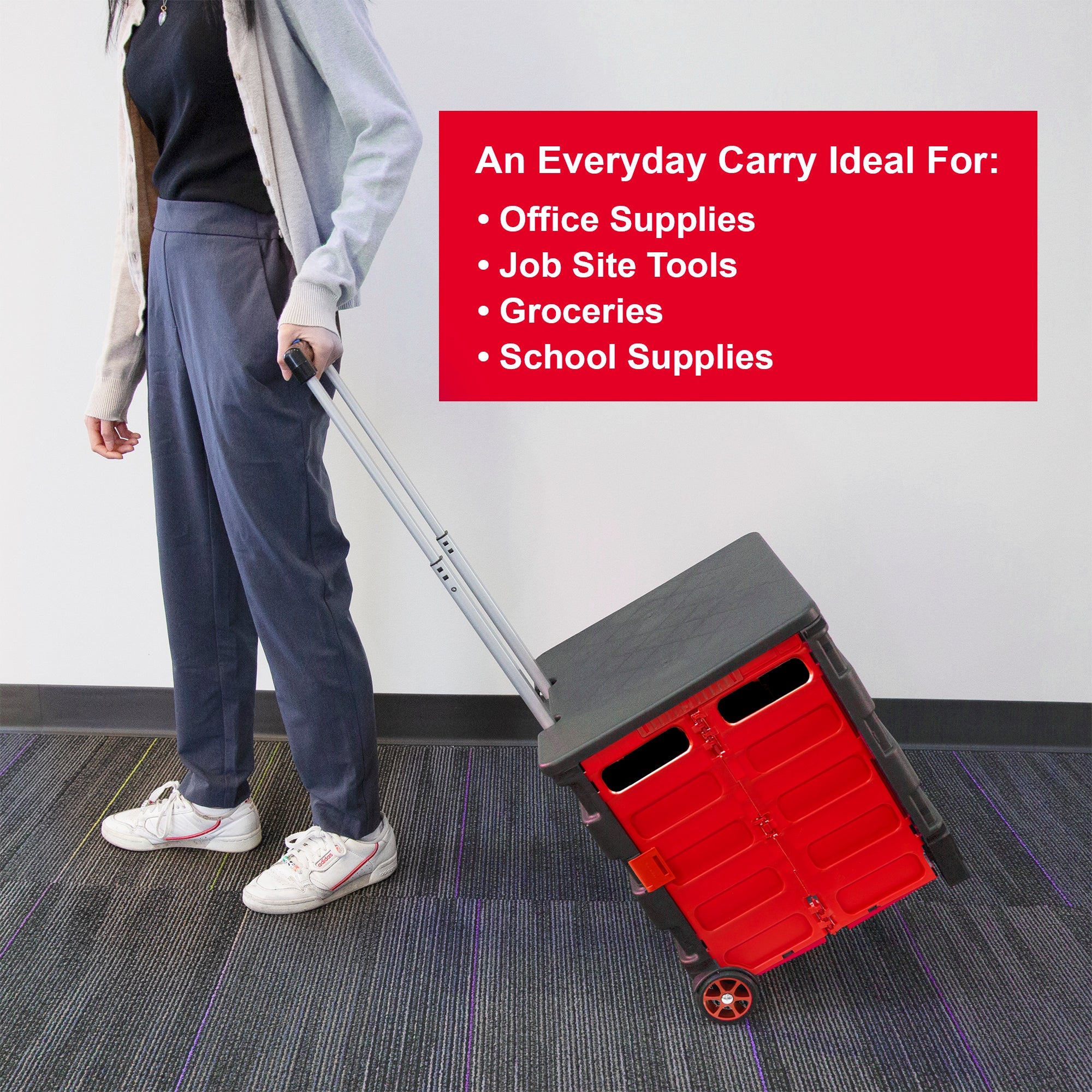 Foldable Rolling Cart w/ Lid Cover Red 16" X 18" X 15"