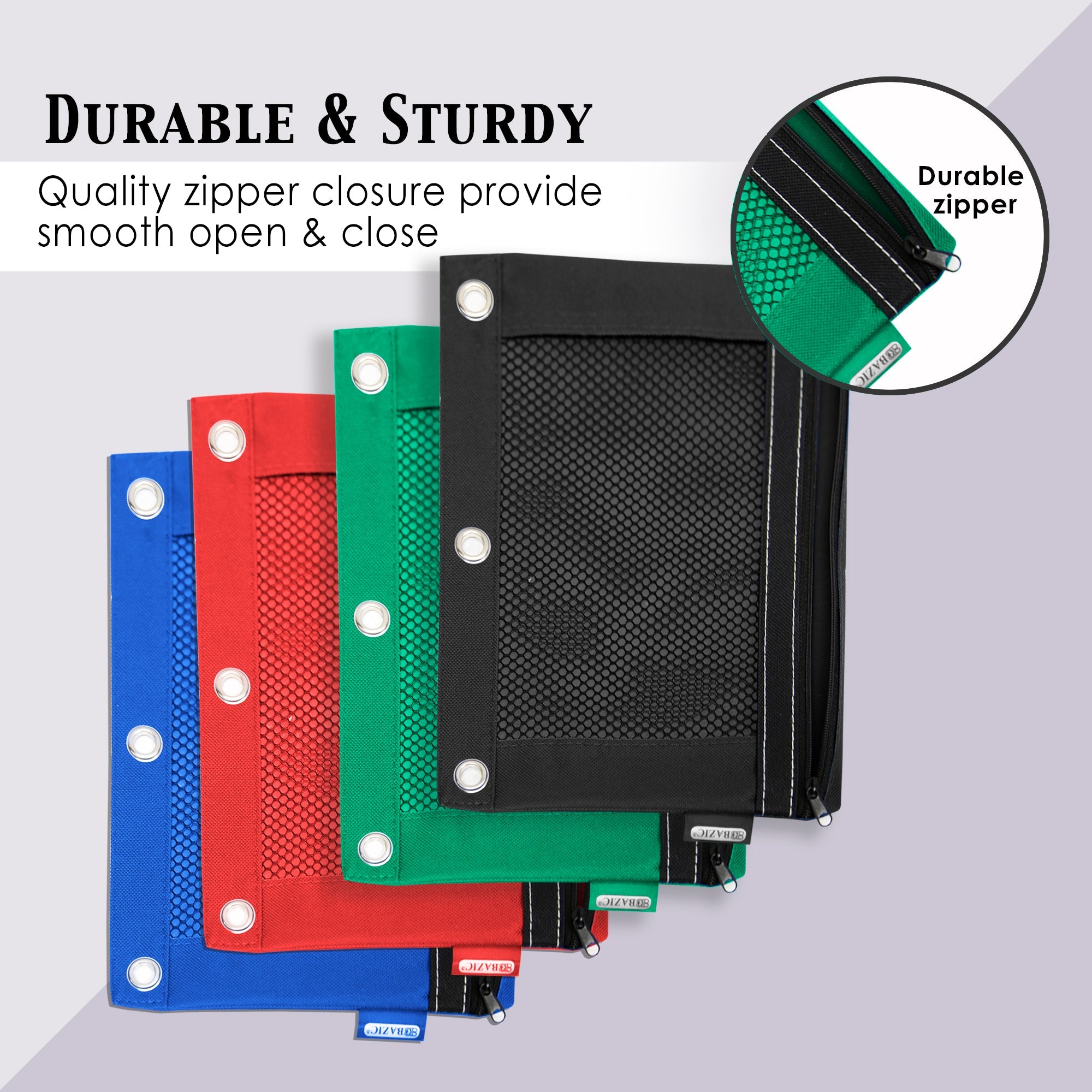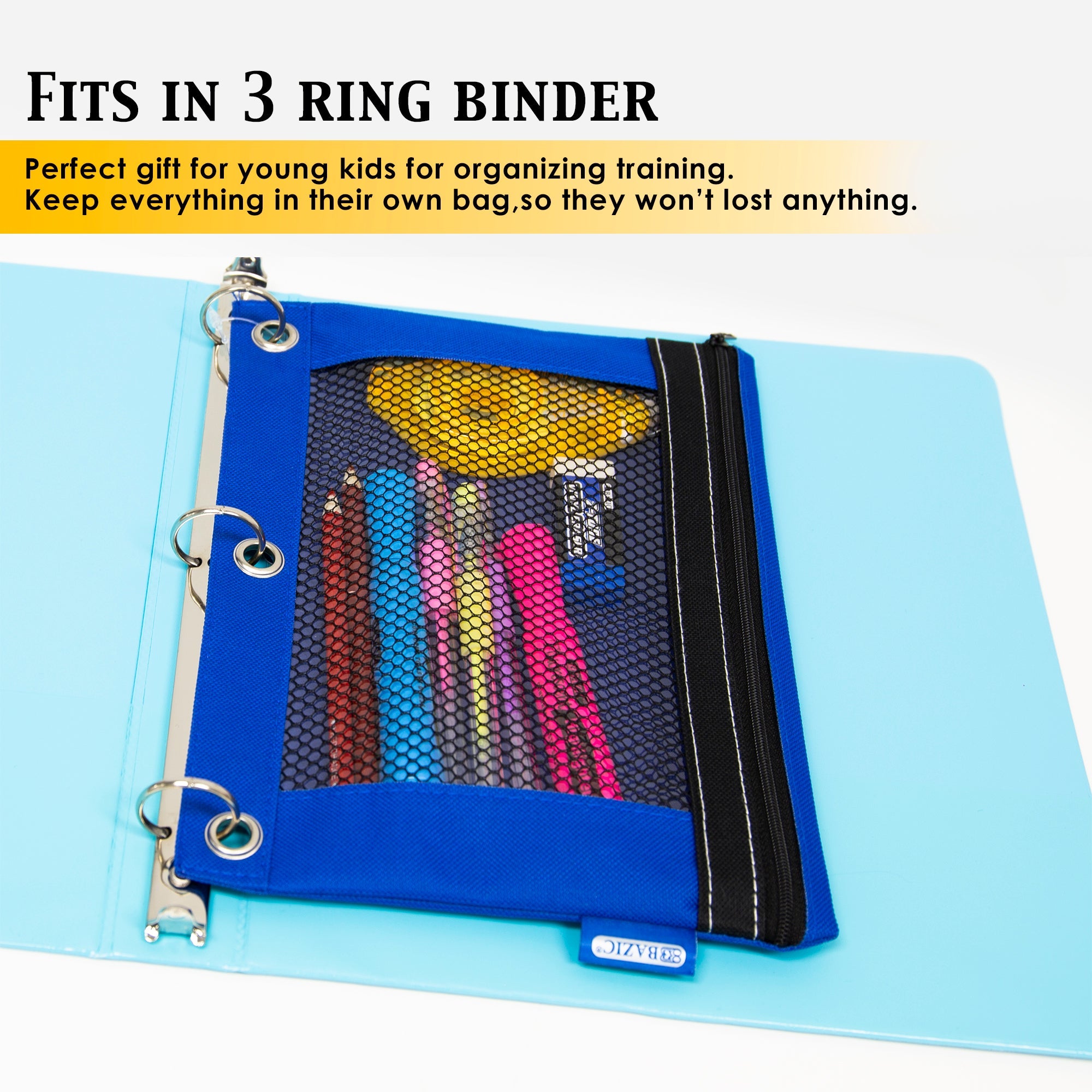 Pencil Pouch 3-Ring Bright Color w/ Mesh Window
