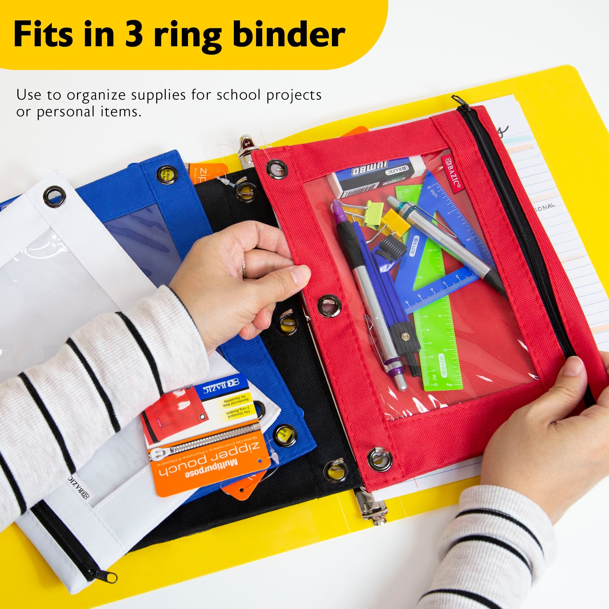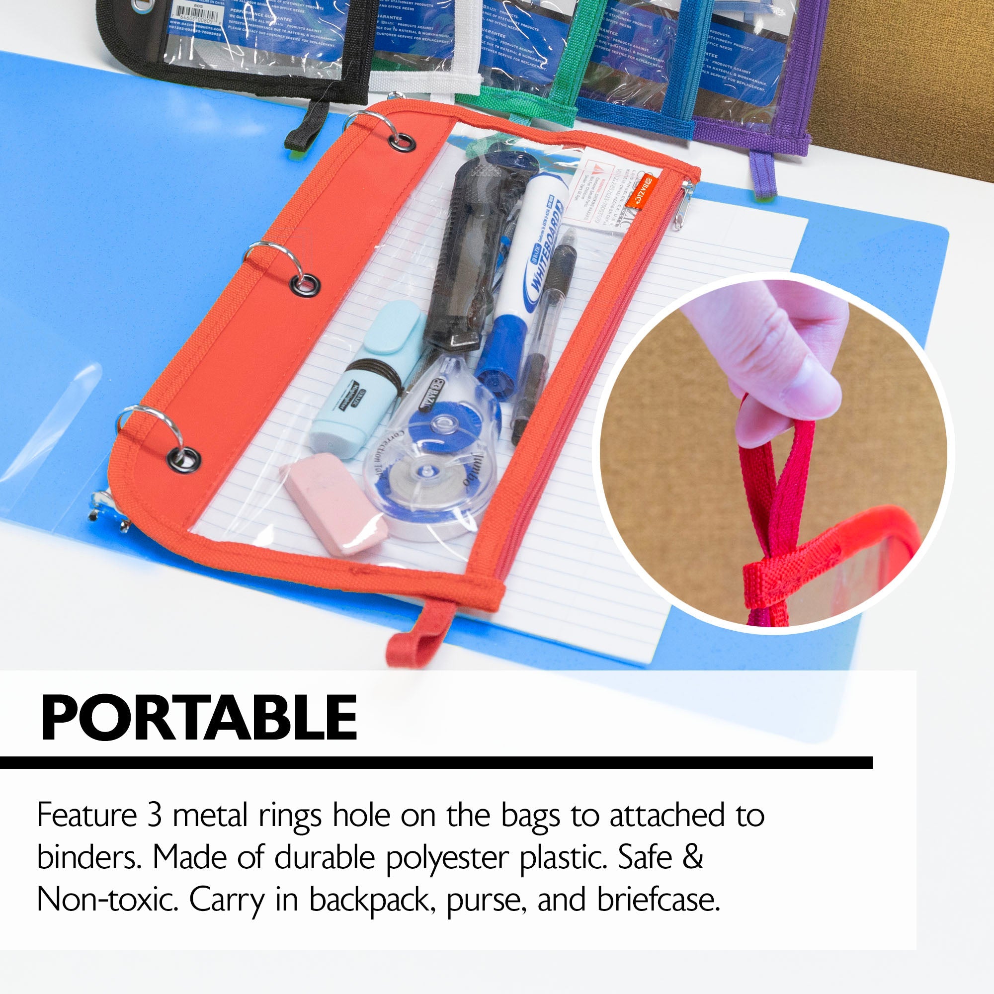 Pencil Pouch 3-Ring Bright Color w/ Clear Window