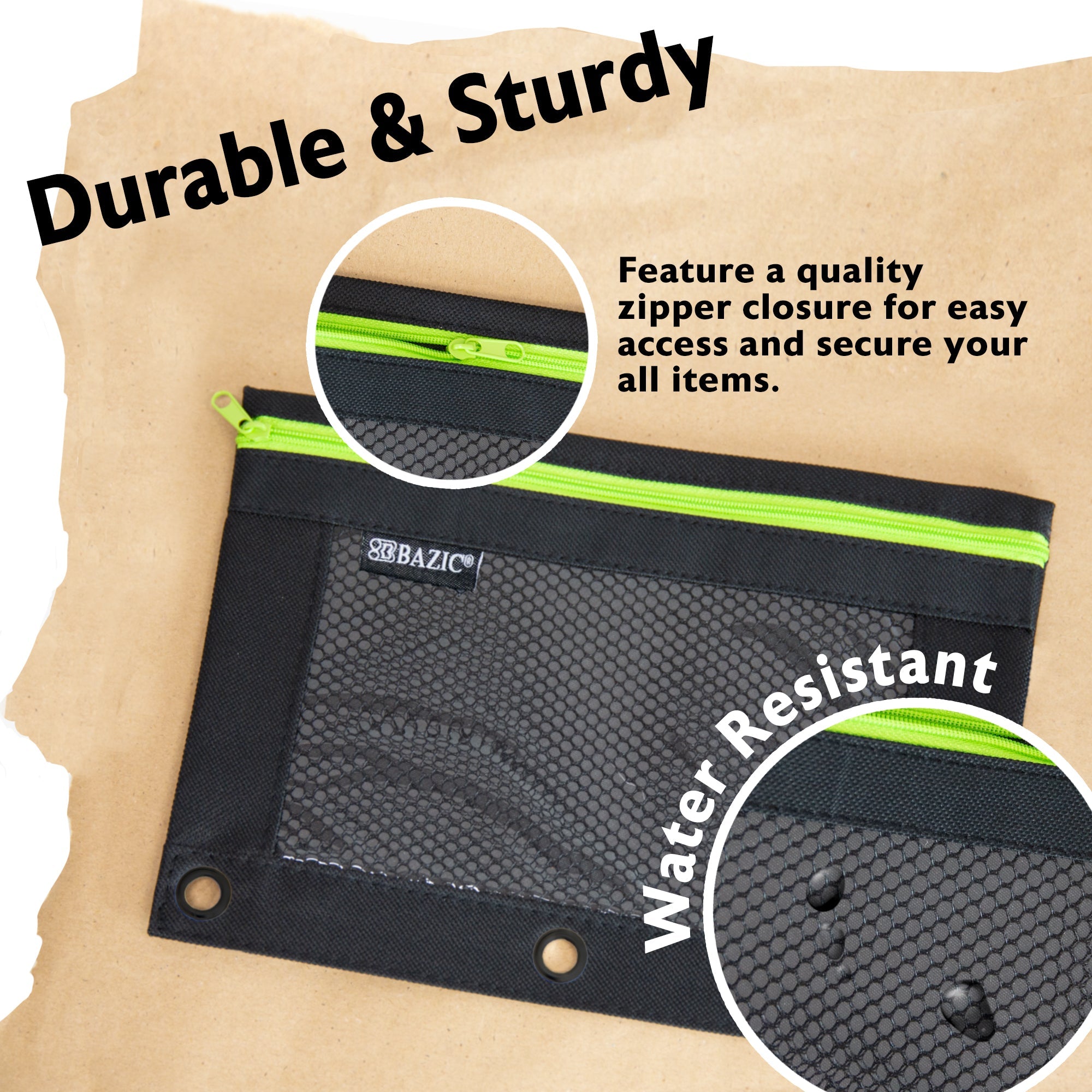 Pencil Pouch Neon Black 3 Ring Binder Pouch w/ Mesh Window