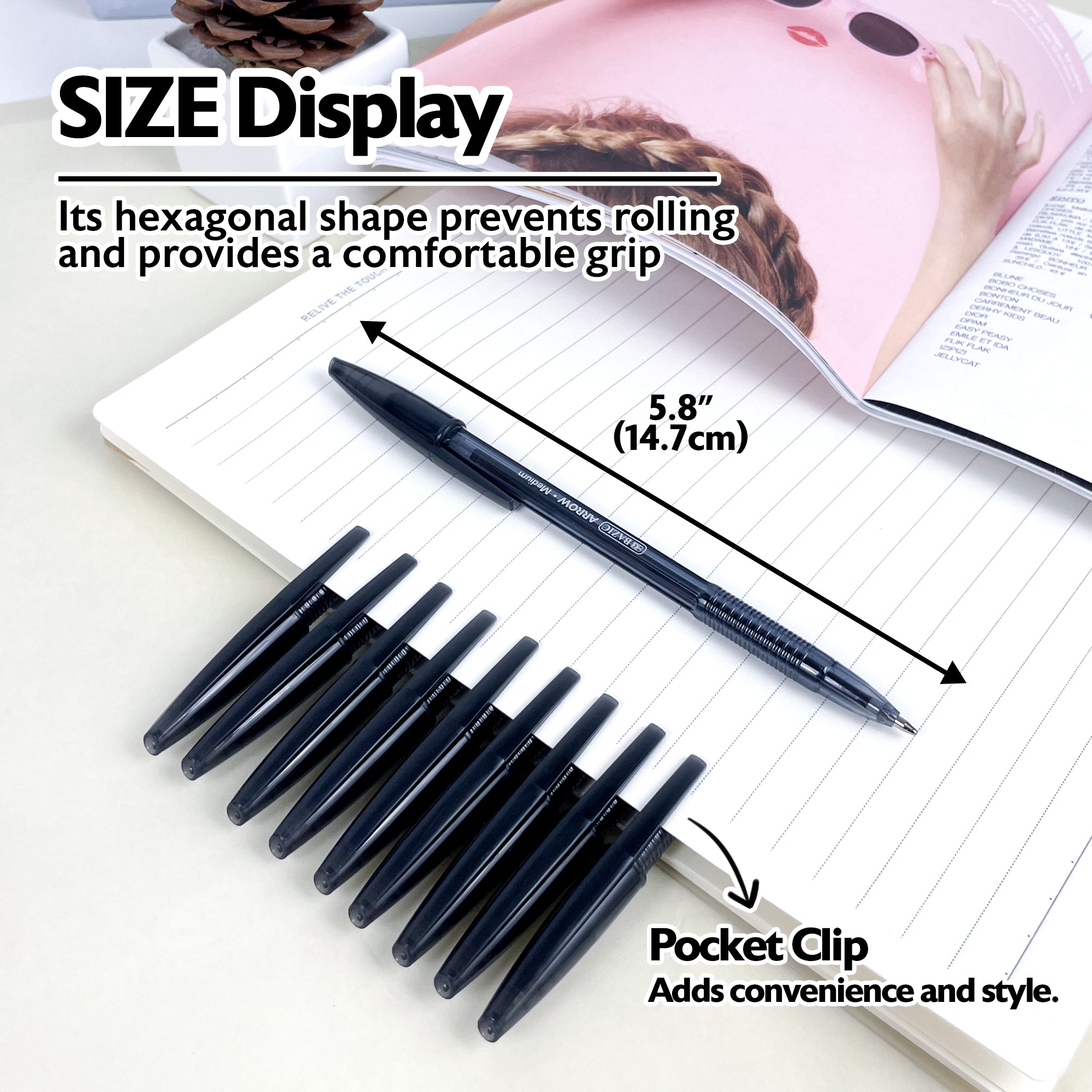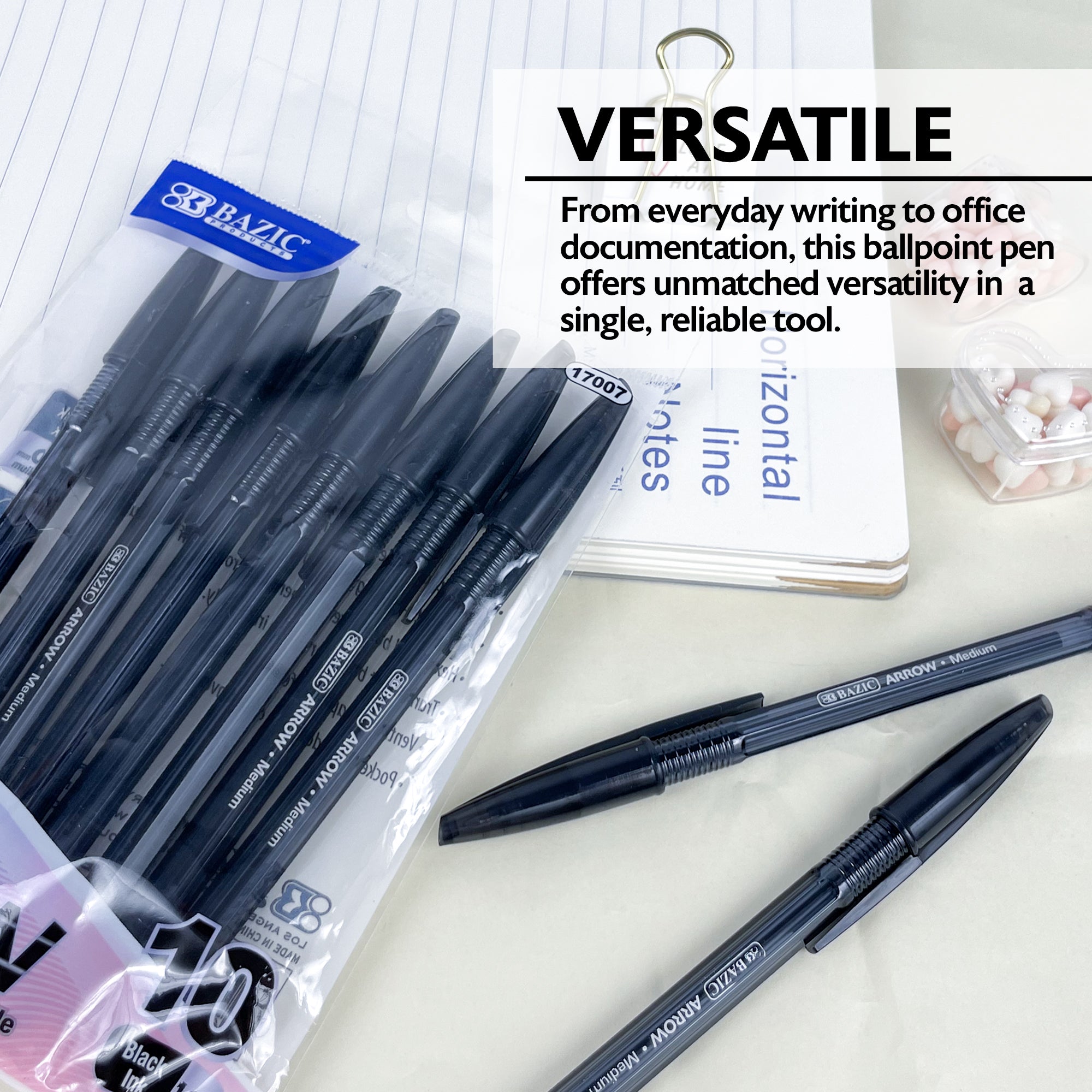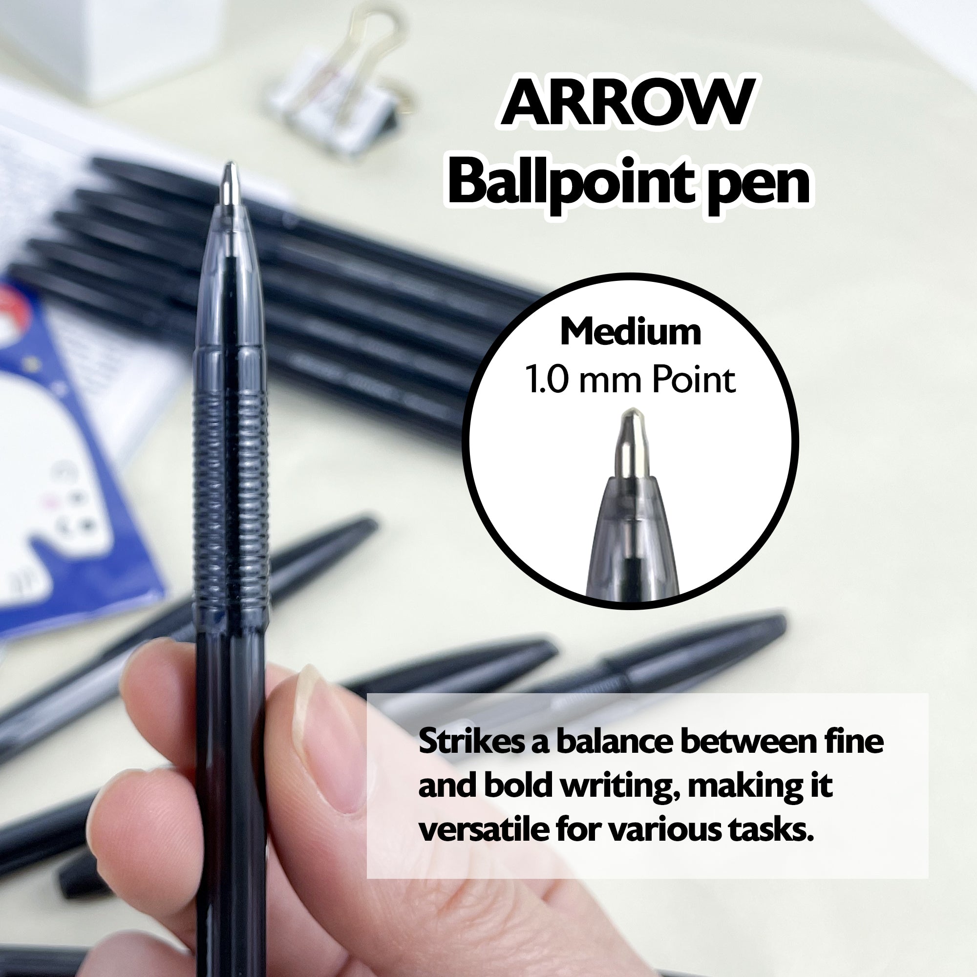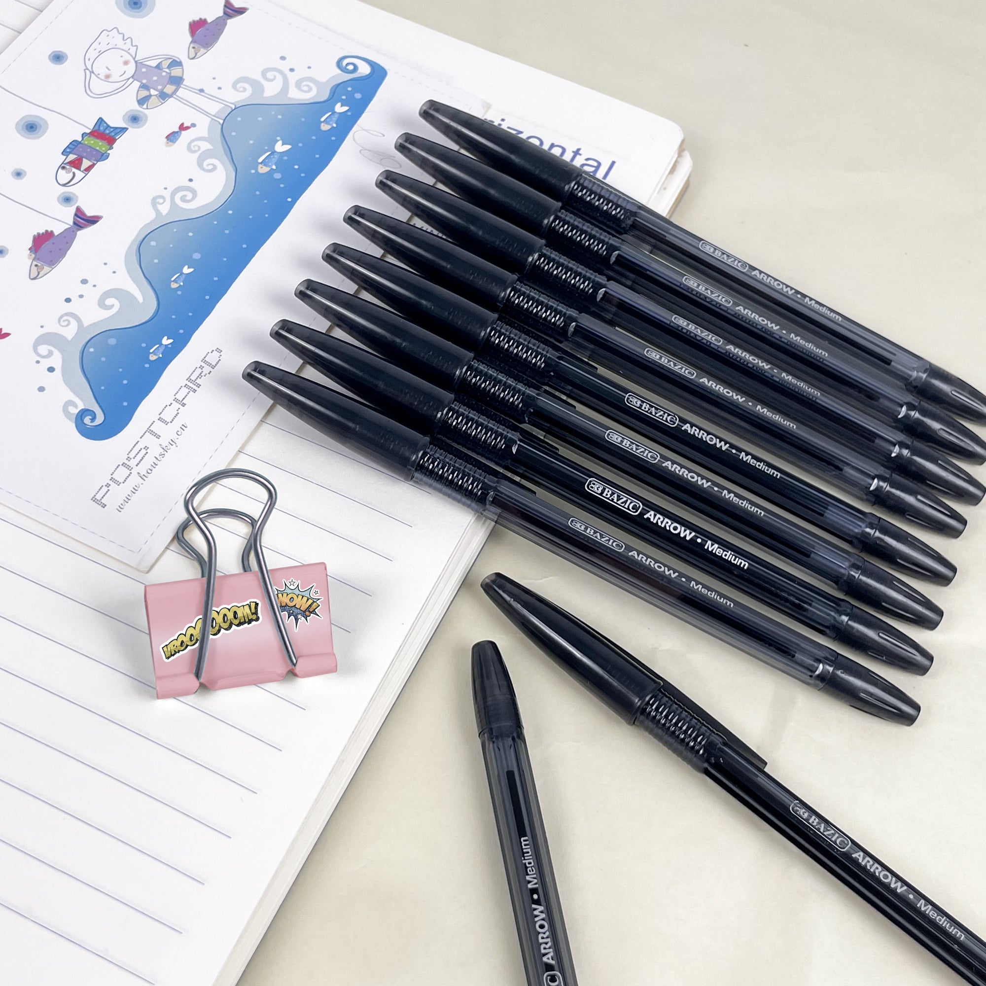 Arrow Black Stick Pen (10/Pack)