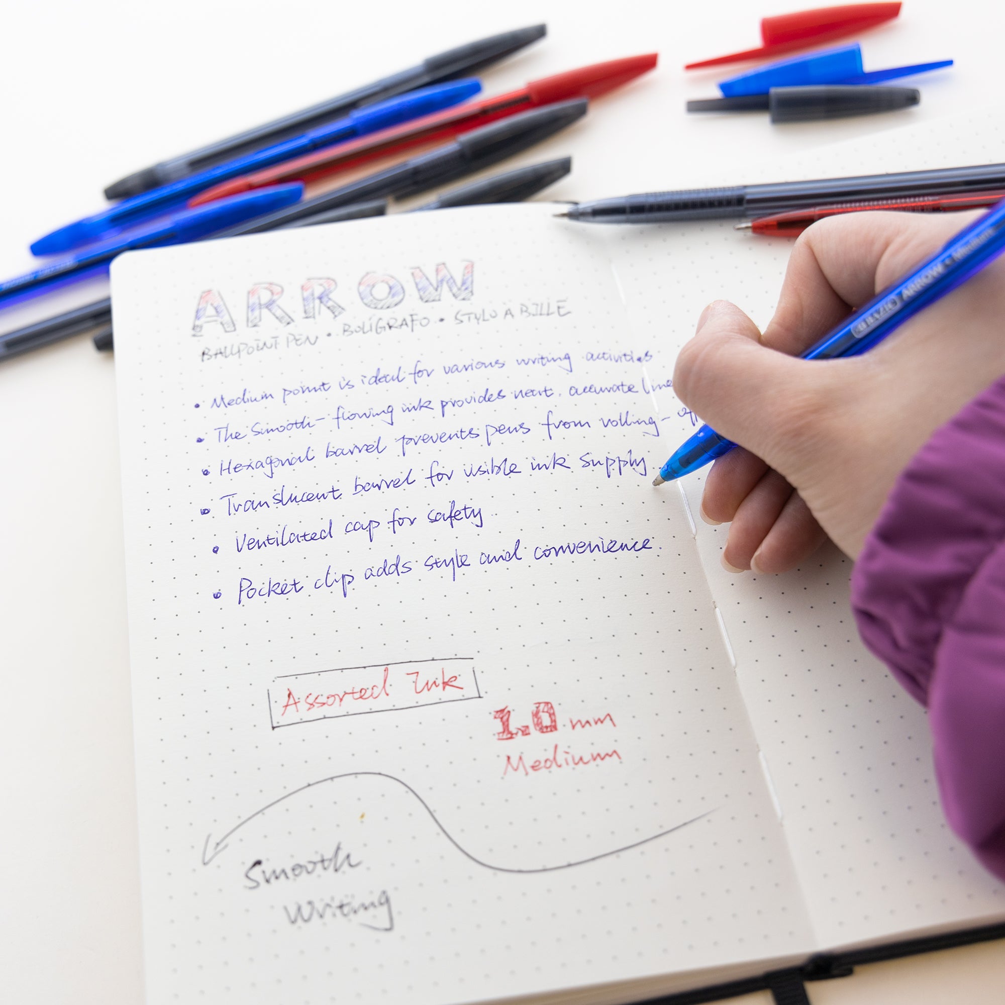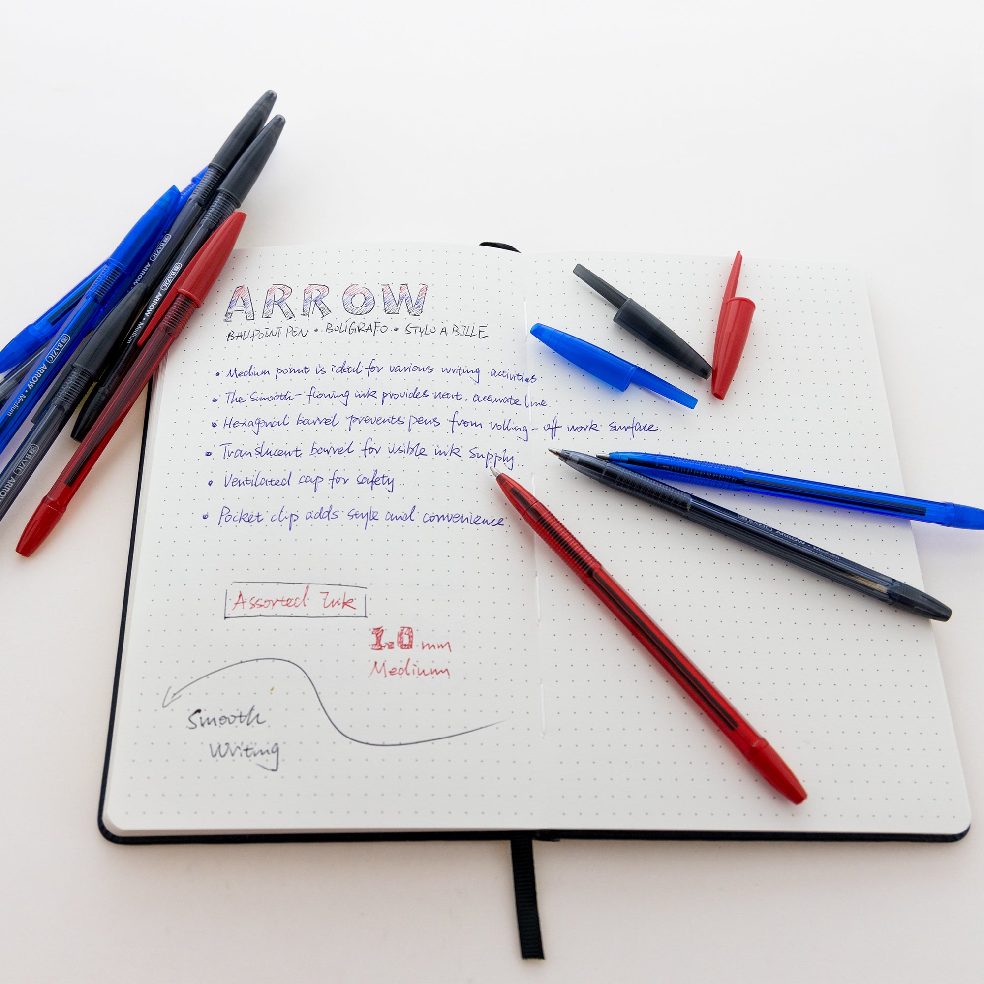 Arrow Assorted Color Stick Pen (10/Pack)
