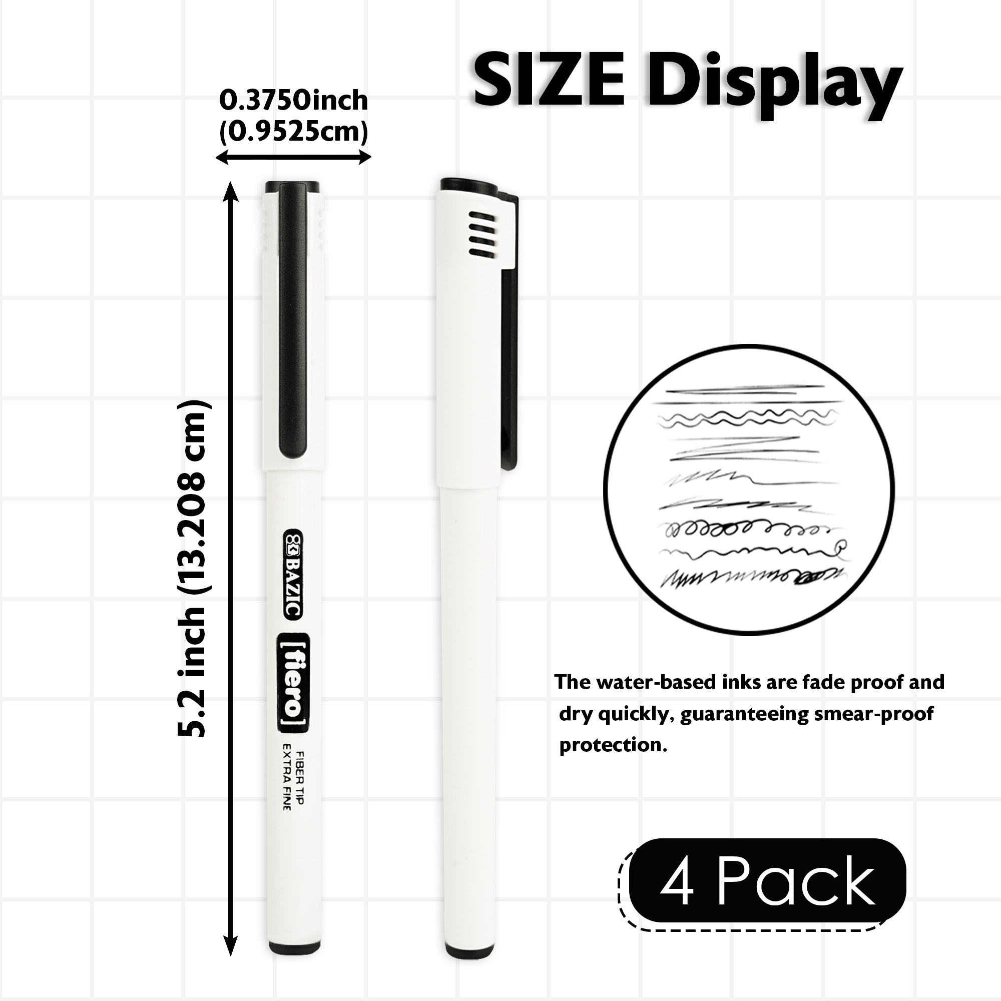 Fiero Black Fiber Tip Fineliner Pen (4/Pack)