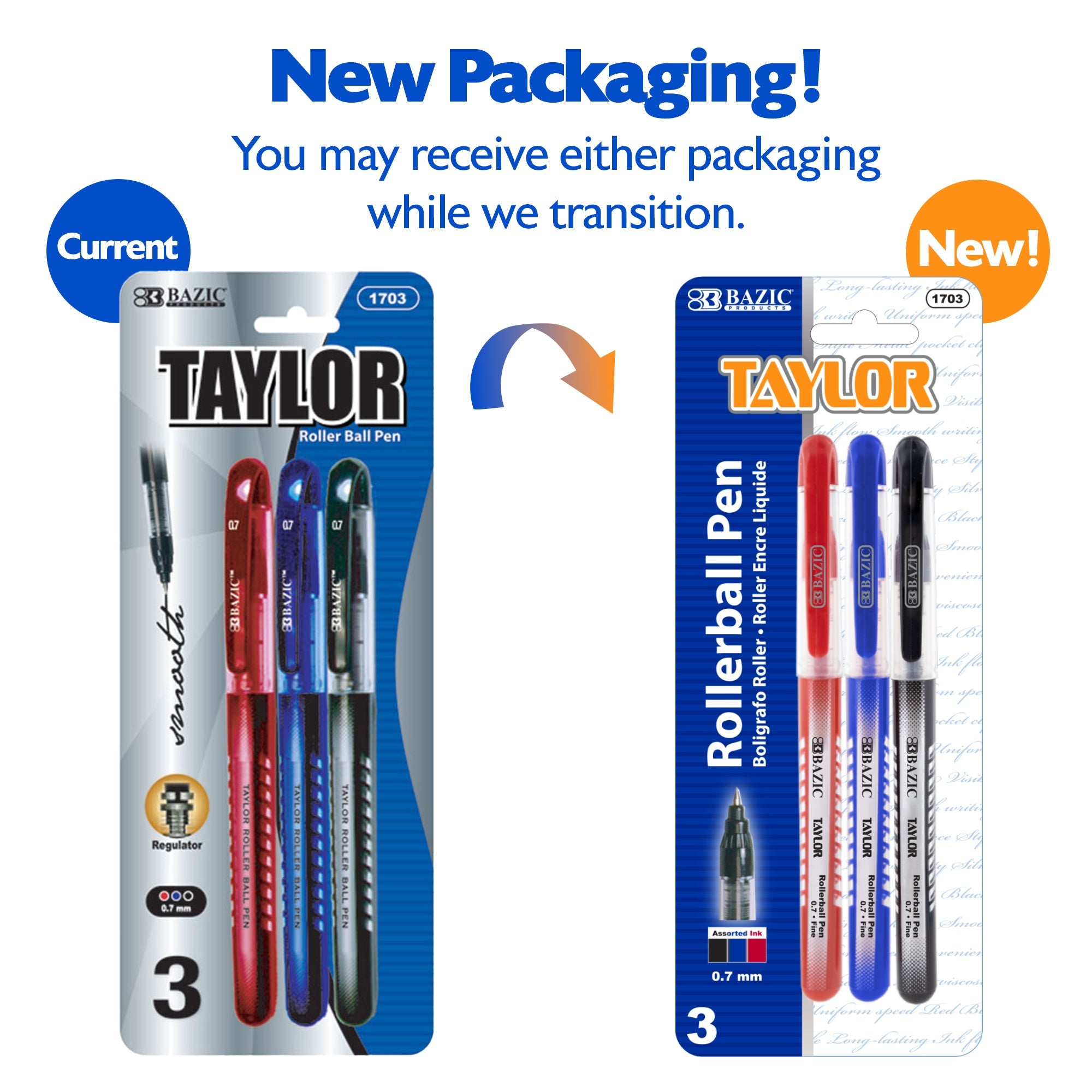 Taylor Assorted Color Rollerball Pen (3/Pack)