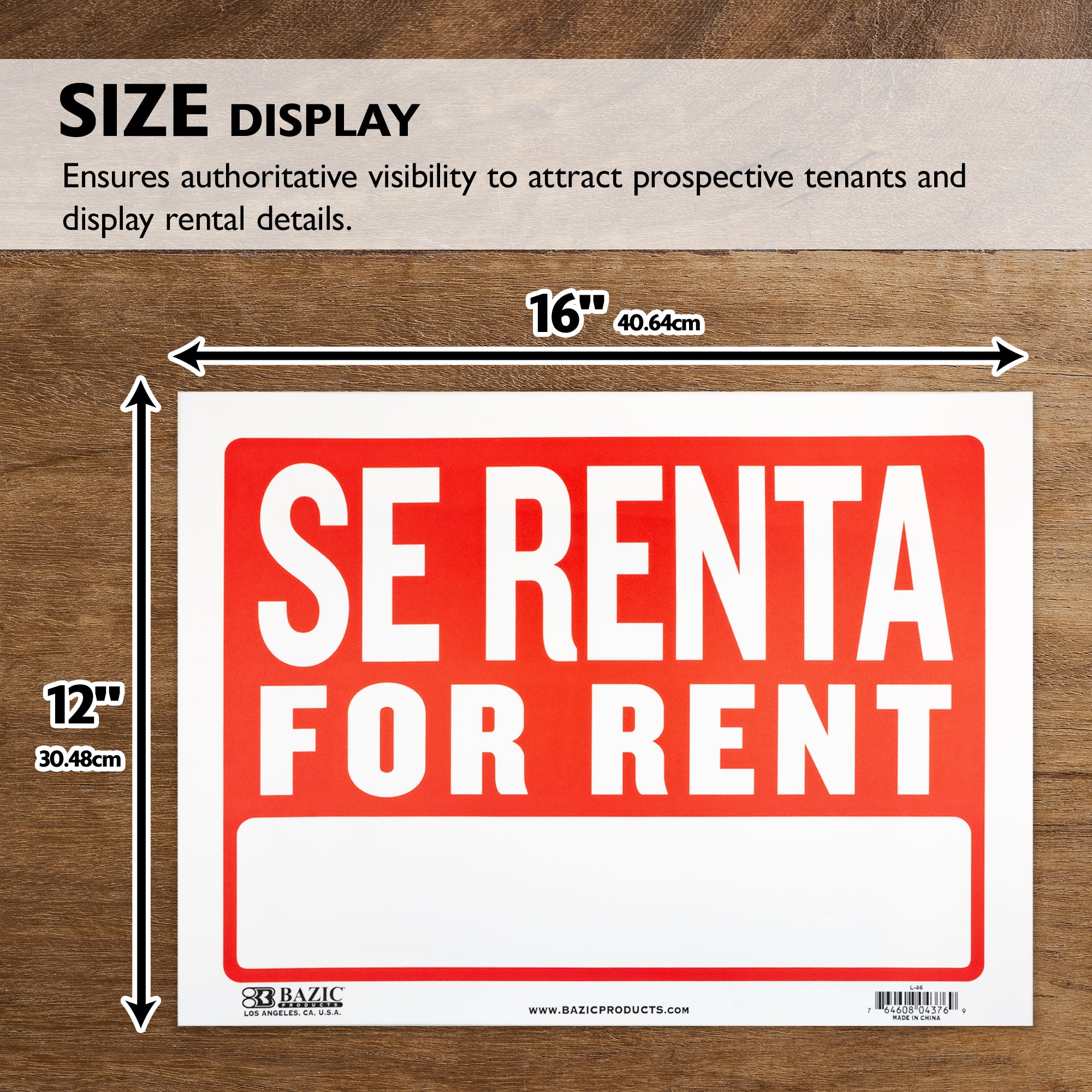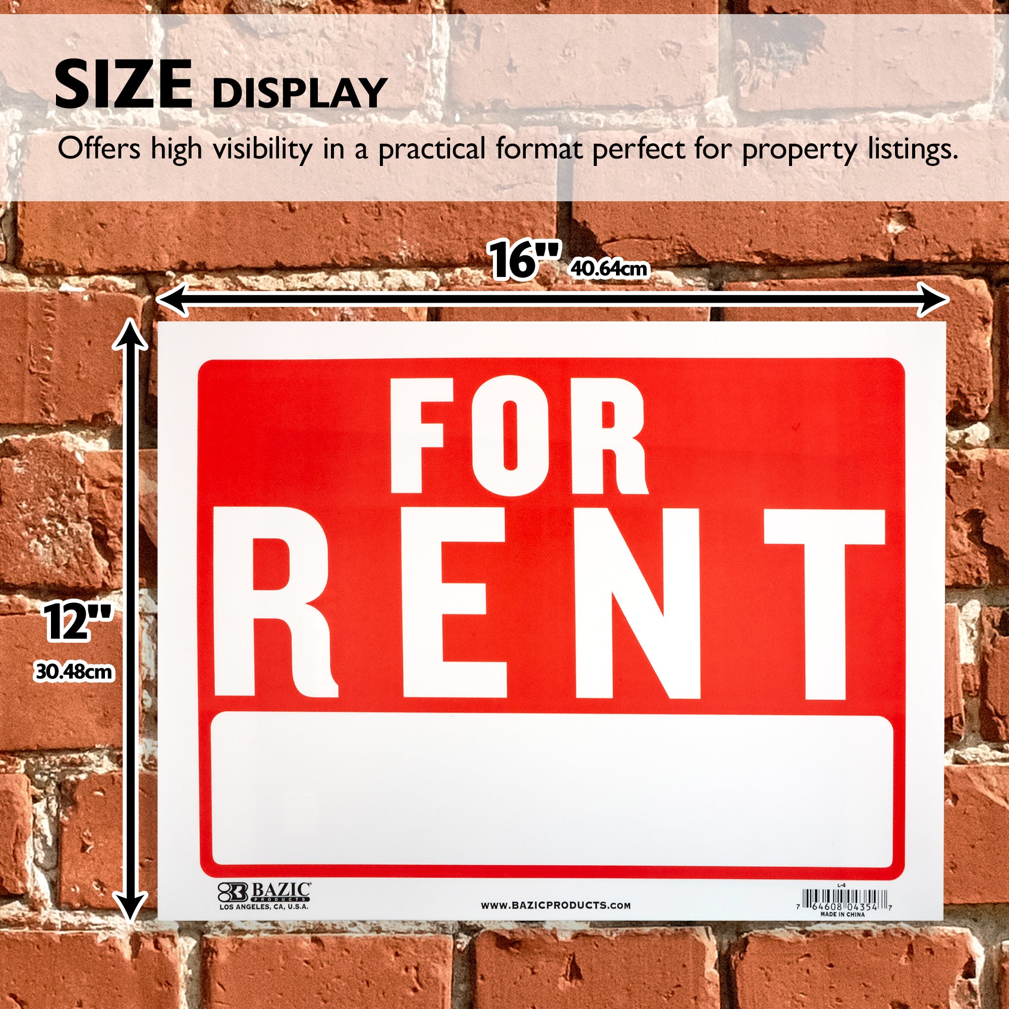 12" X 16" For Rent Sign
