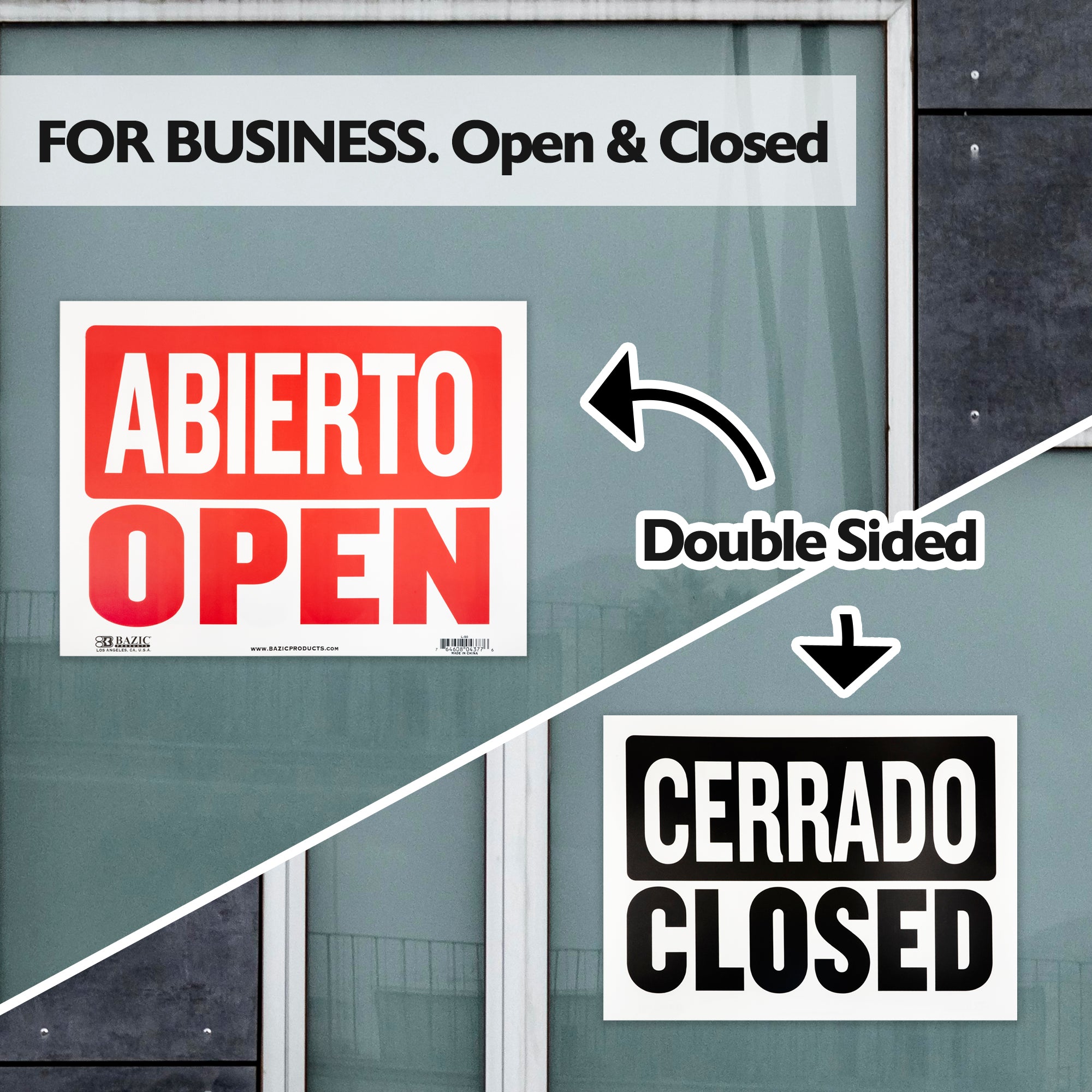 9" X 12" Abierto Sign w/ Cerrado Sign on Back