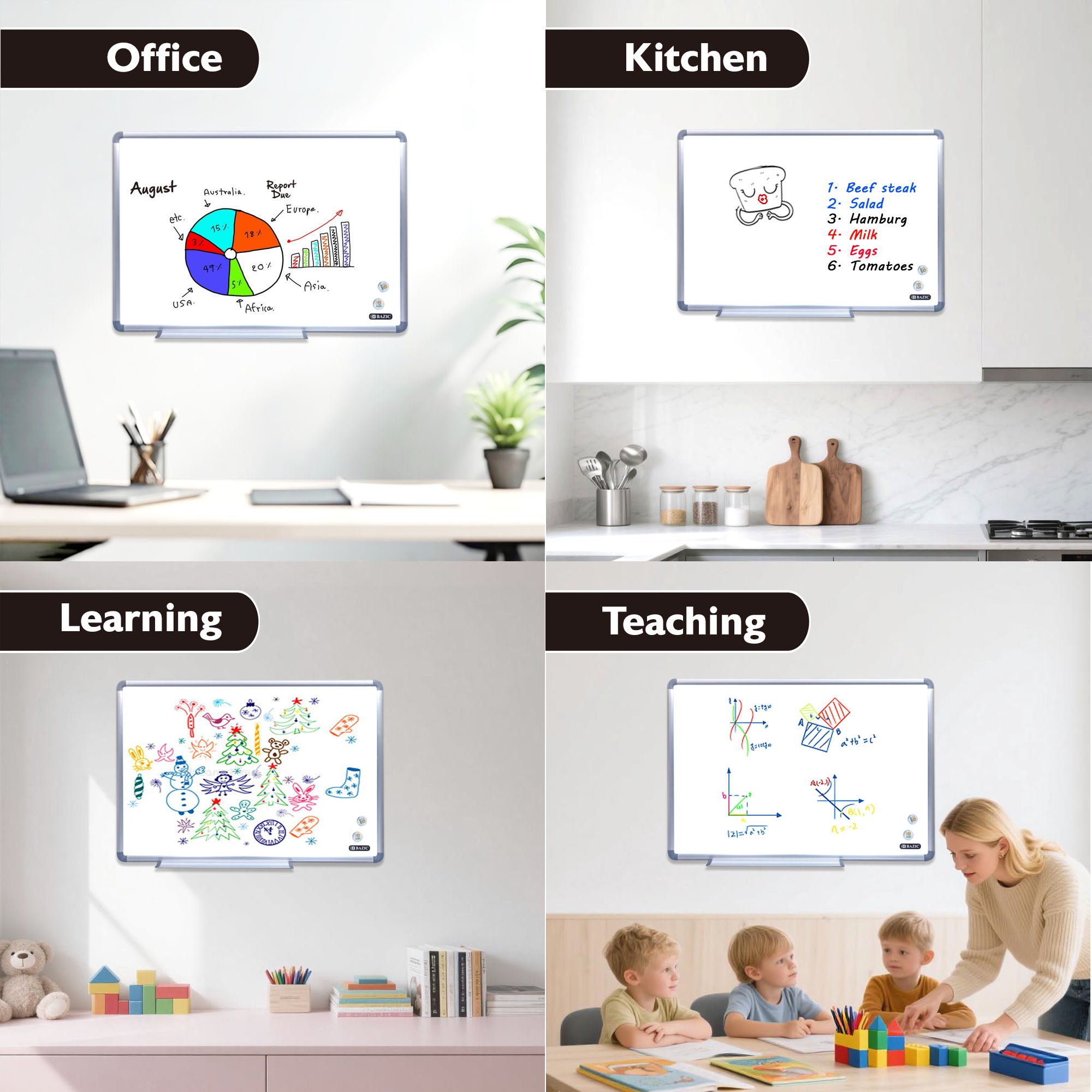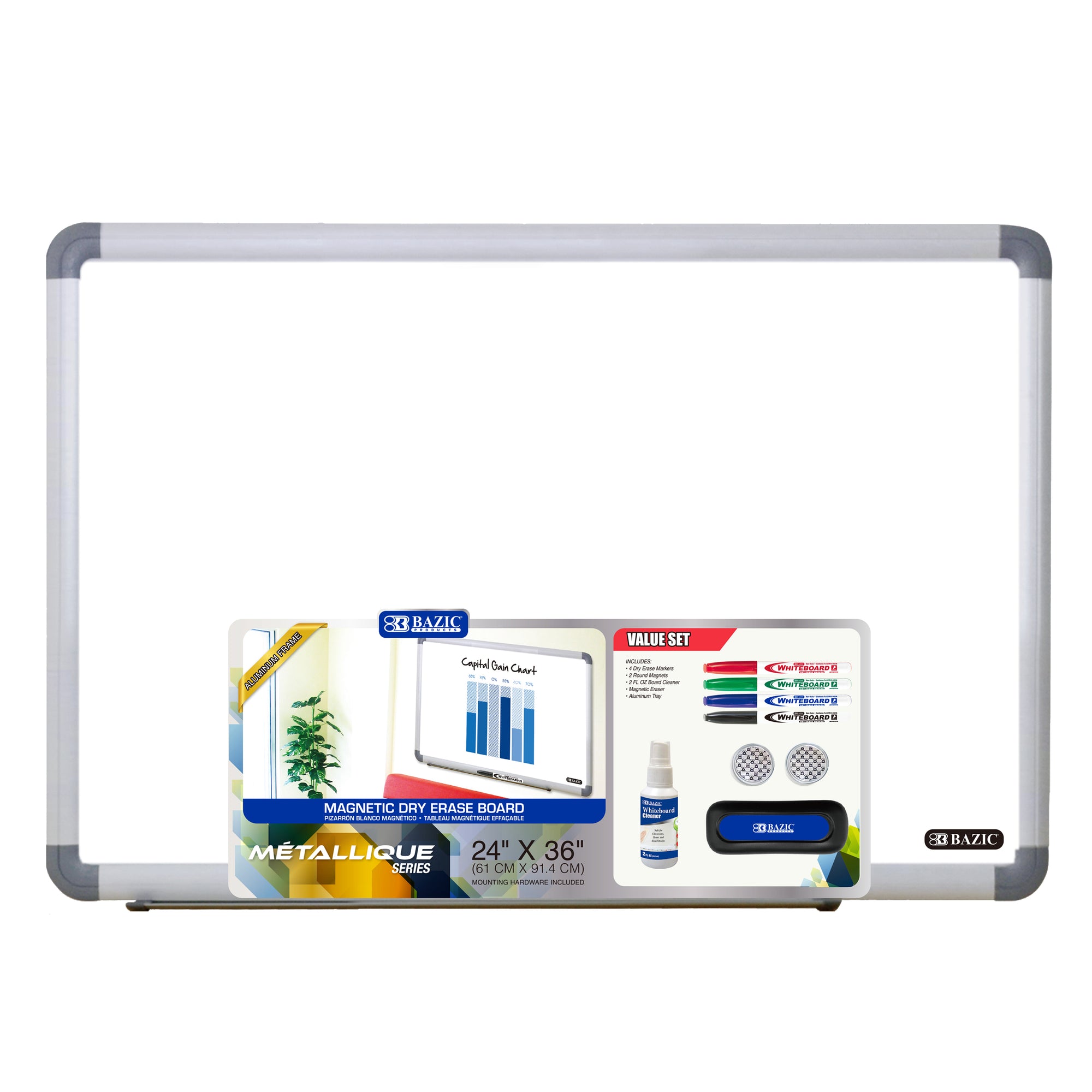 24" x 36" METALLIQUE Aluminum Frame Magnetic Dry Erase Board Value Pack