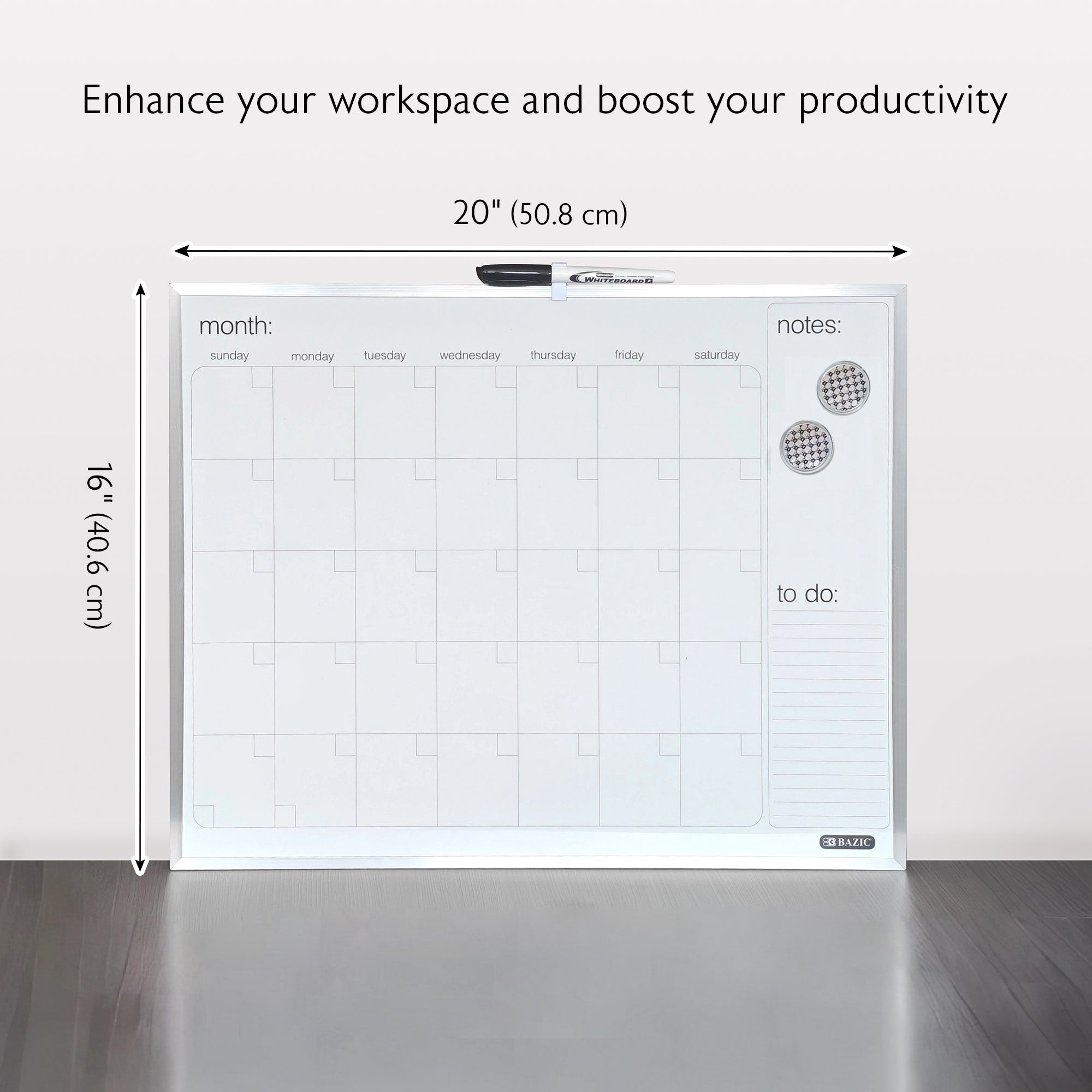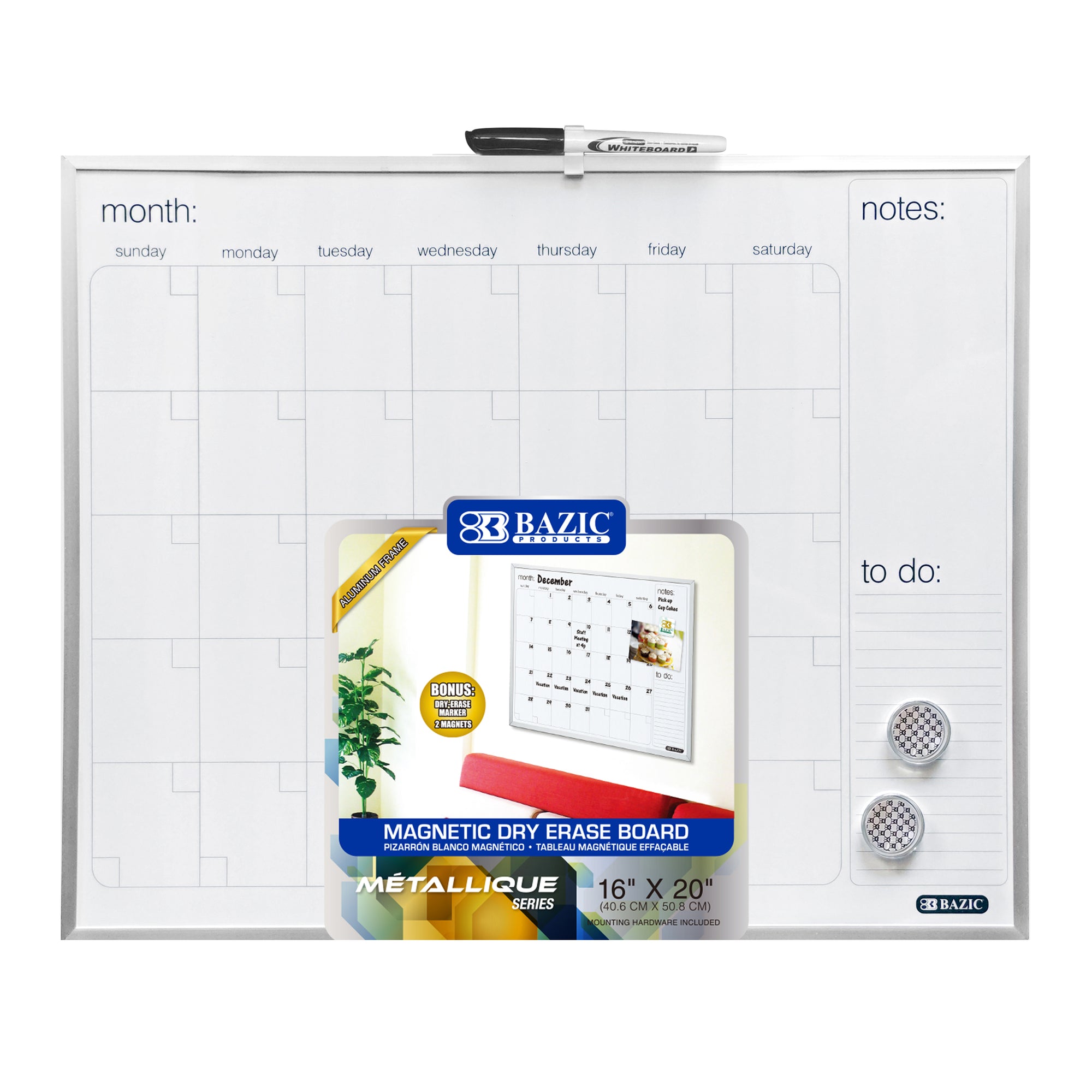 16" X 20" METALLIQUE Aluminum Frame Magnetic Dry Erase Calendar
