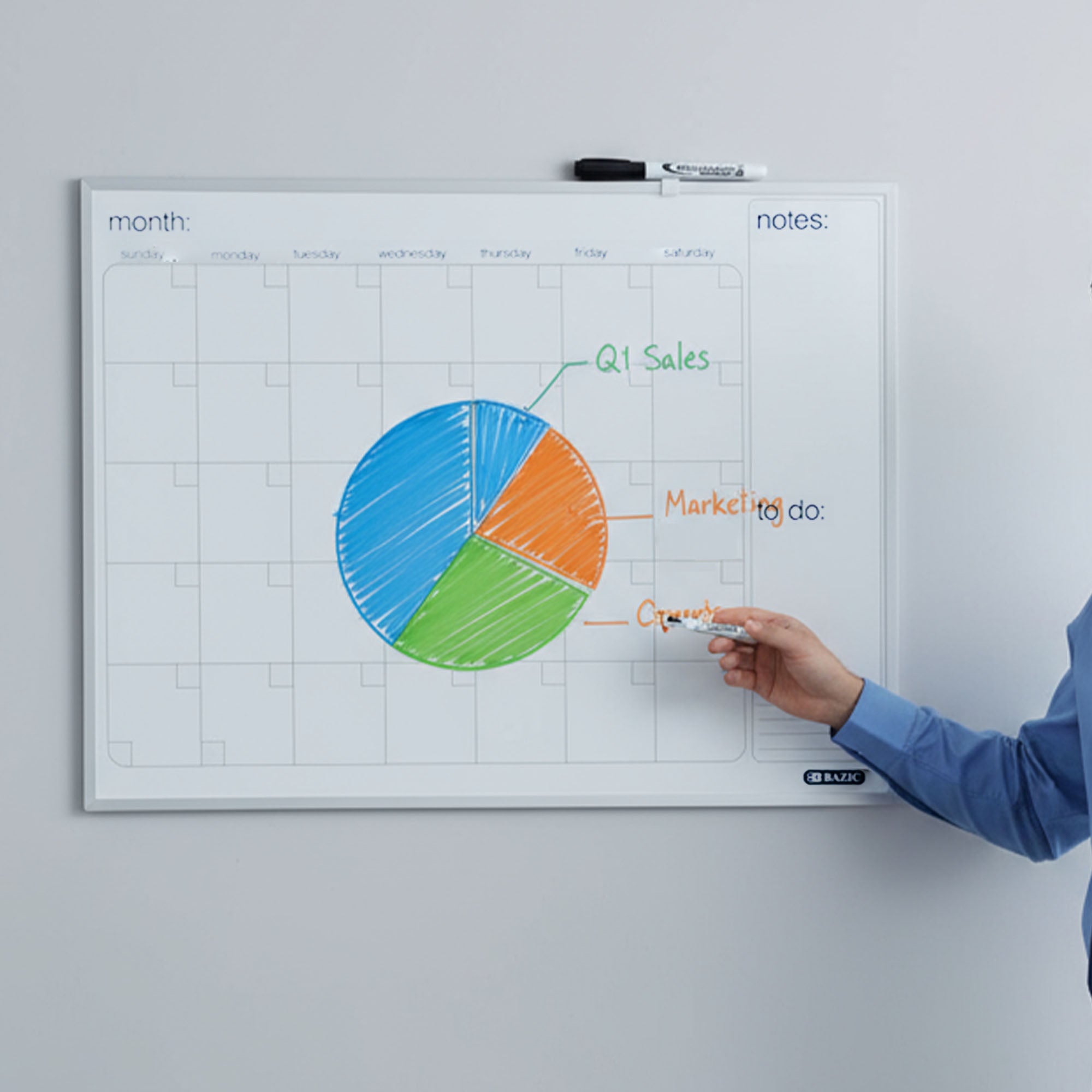11" X 14" CLASSIQUE Magnetic Dry Erase Calendar Board w/ Marker & 2 Magnets
