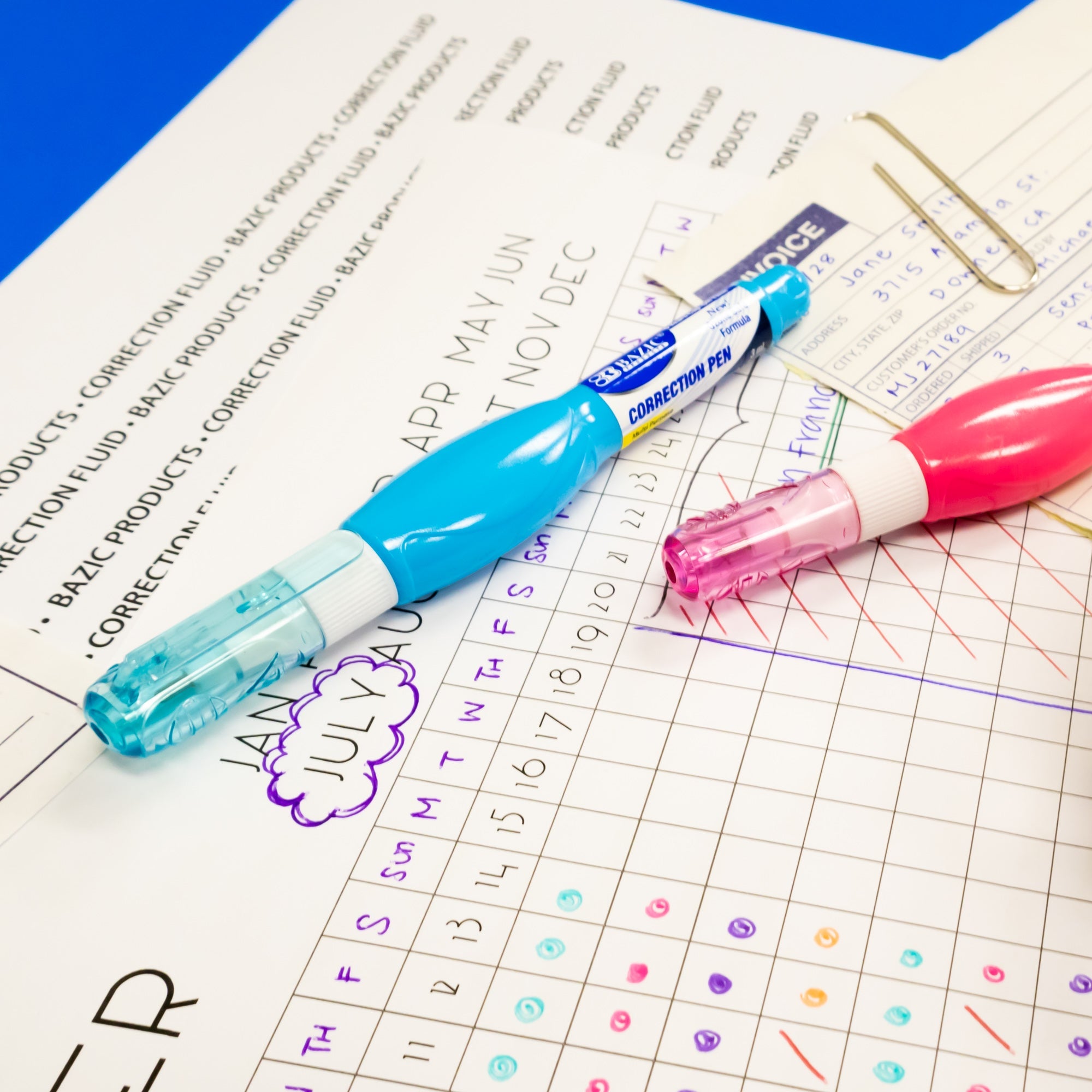 - NO MORE MISTAKES! We've got you covered with our assortment of correction fluids, tape and pen. No need to worry about re-doing your work due to a minor mistake.