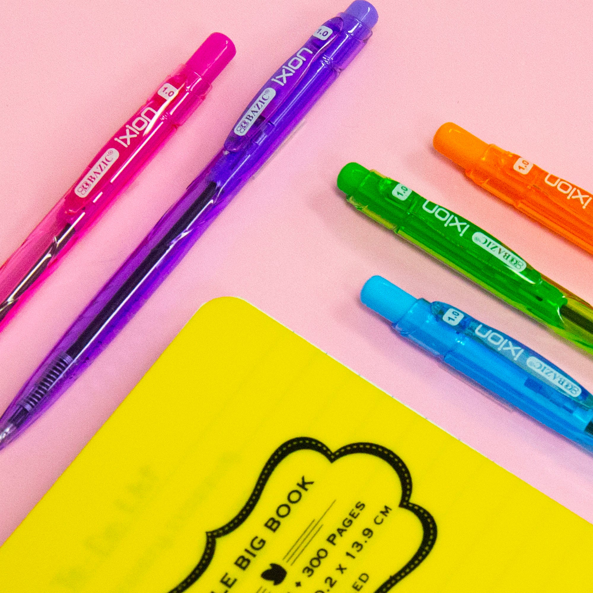 - IXION BLACK INK RETRACTABLE PEN. Each pack includes 5-Assorted Retractable Pens with Black Ink; Actual Colors May Vary! Bold point spreads ink evenly as you write, offering dependable performance.