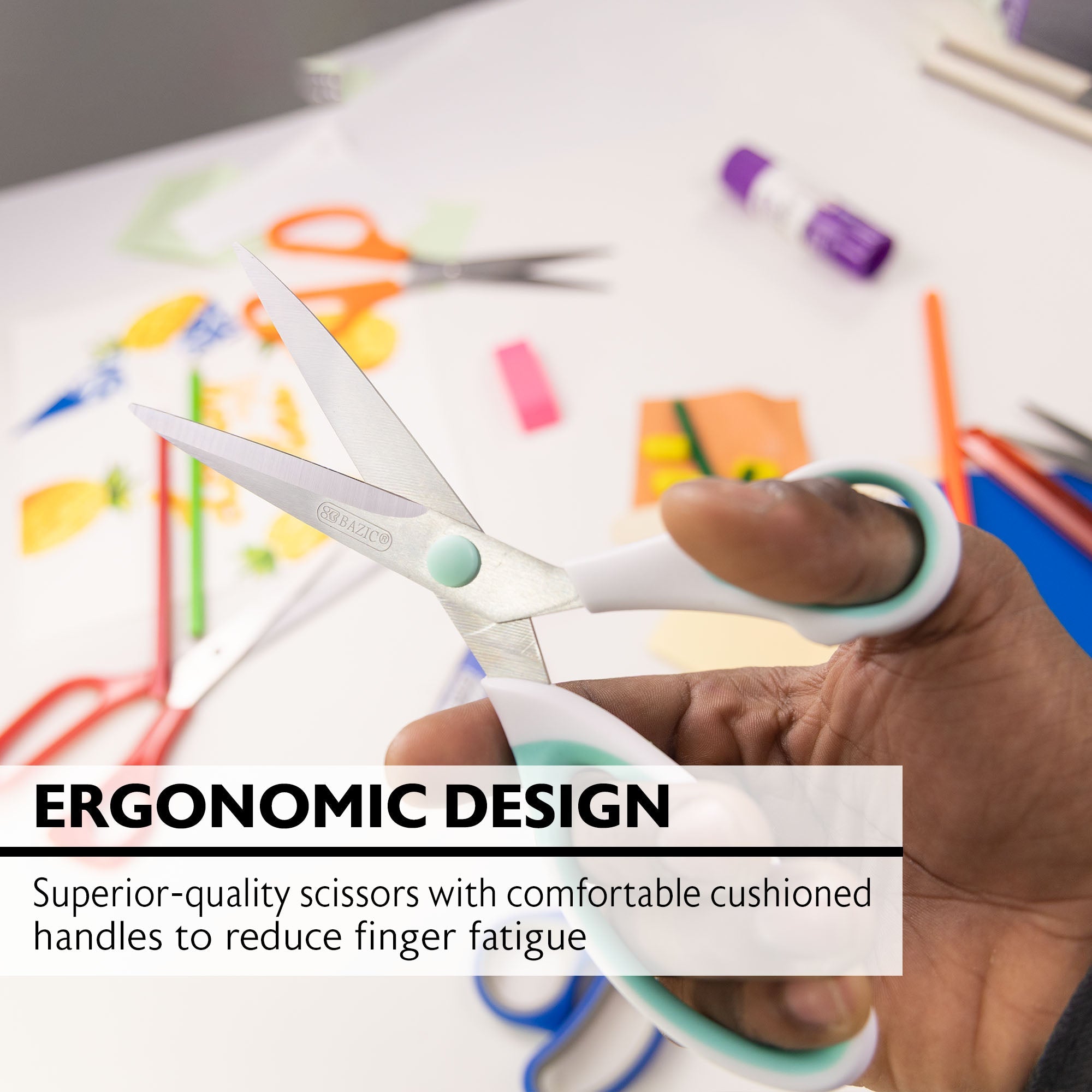- DURABLE. Superior-quality scissors with comfortable cushioned handles to reduce finger fatigue. Made of lightweight stainless steel blade. Highly resistant to corrosion.