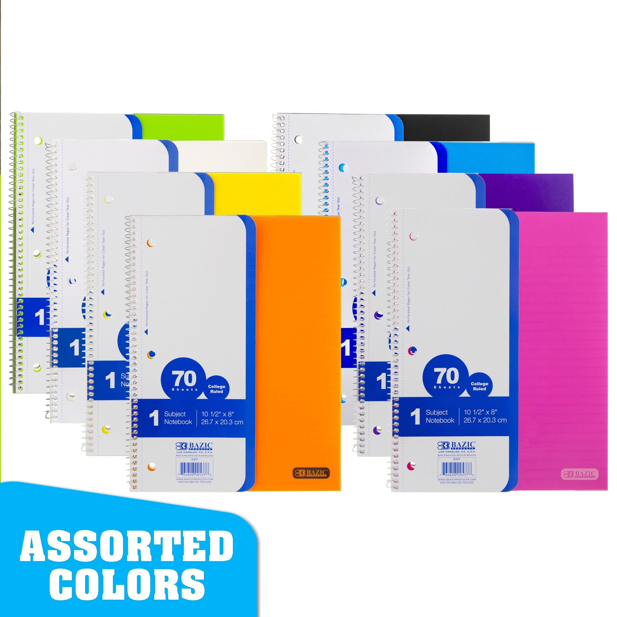 - SIMPLY NOTETAKING. 1-subject poly covered spiral notebooks come with 70 sheets of college-ruled paper. Each set comes with 8 assorted color covered notebooks. Size: 10.5" x 8"inches.