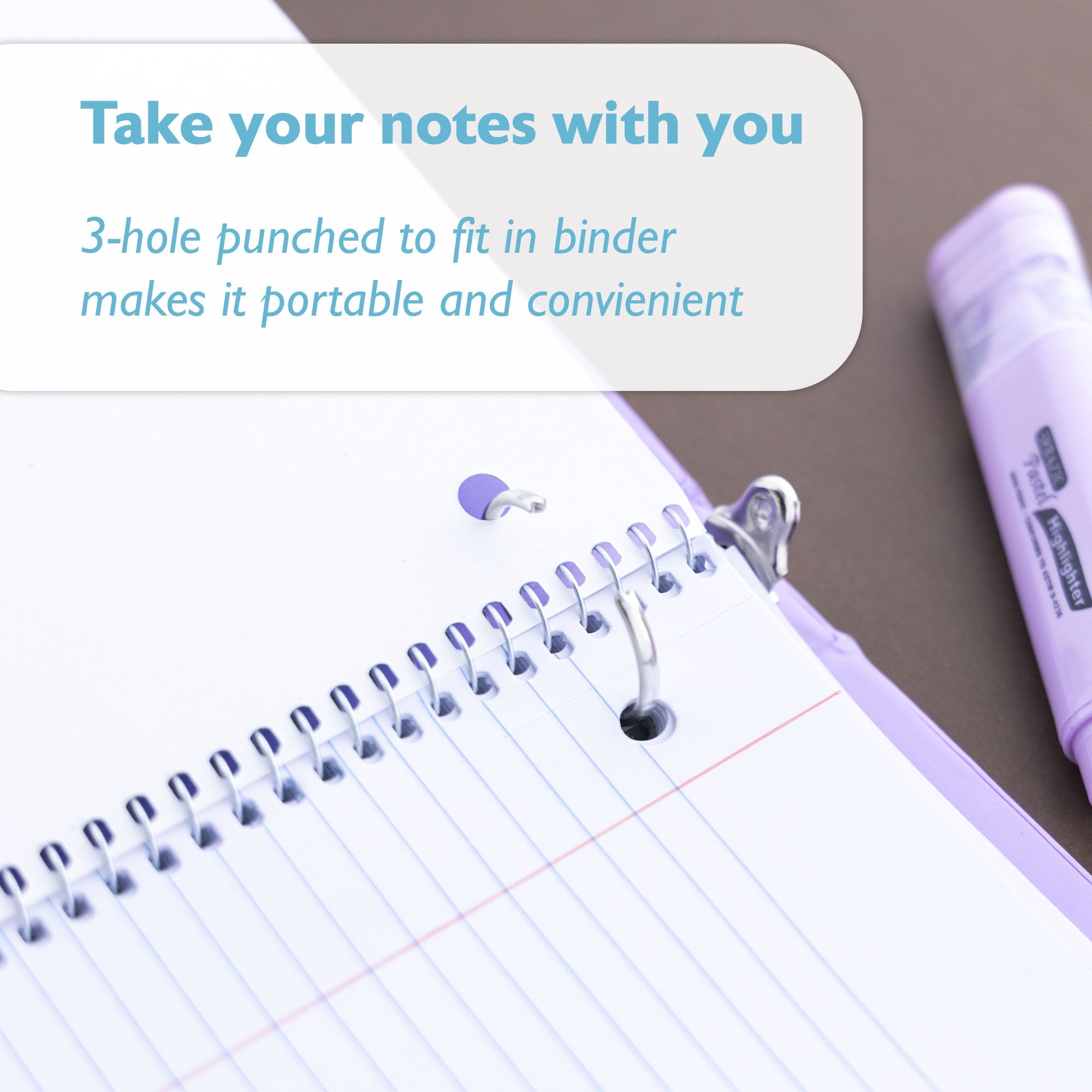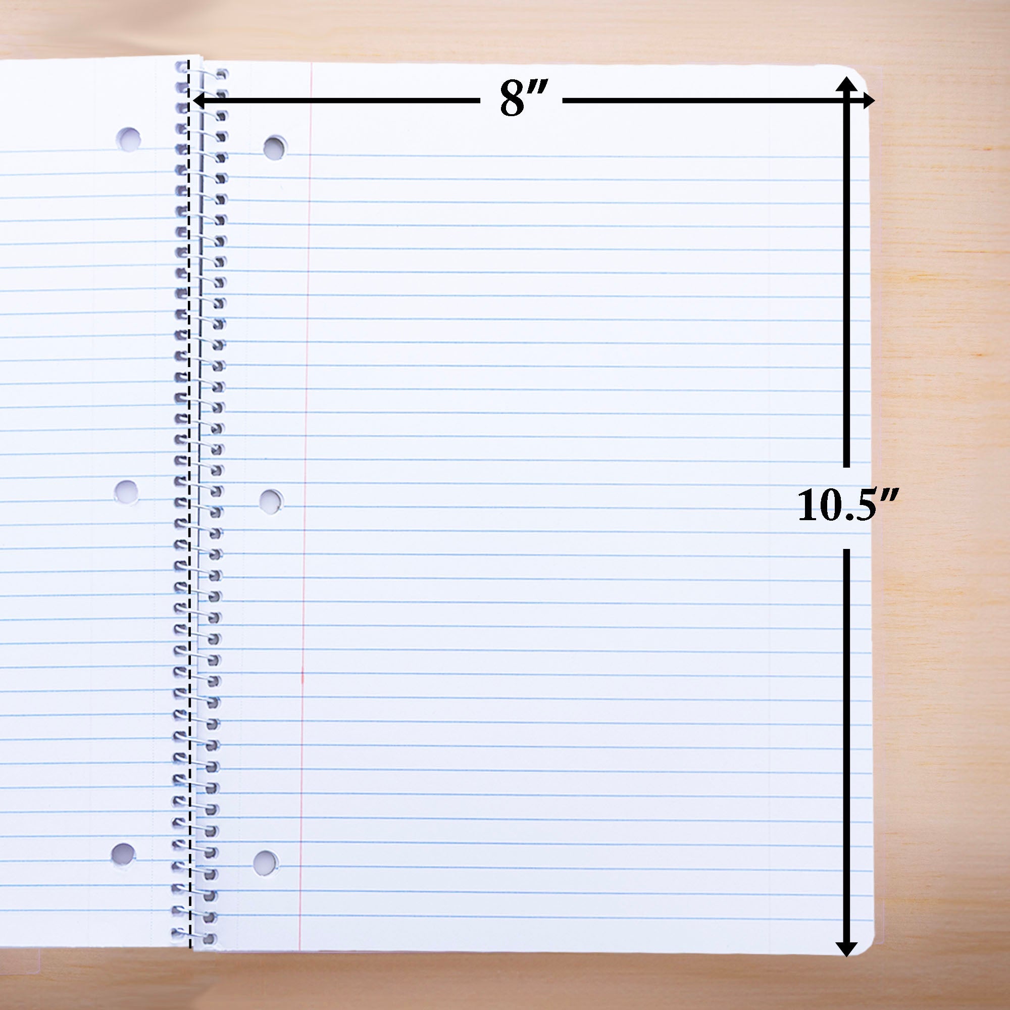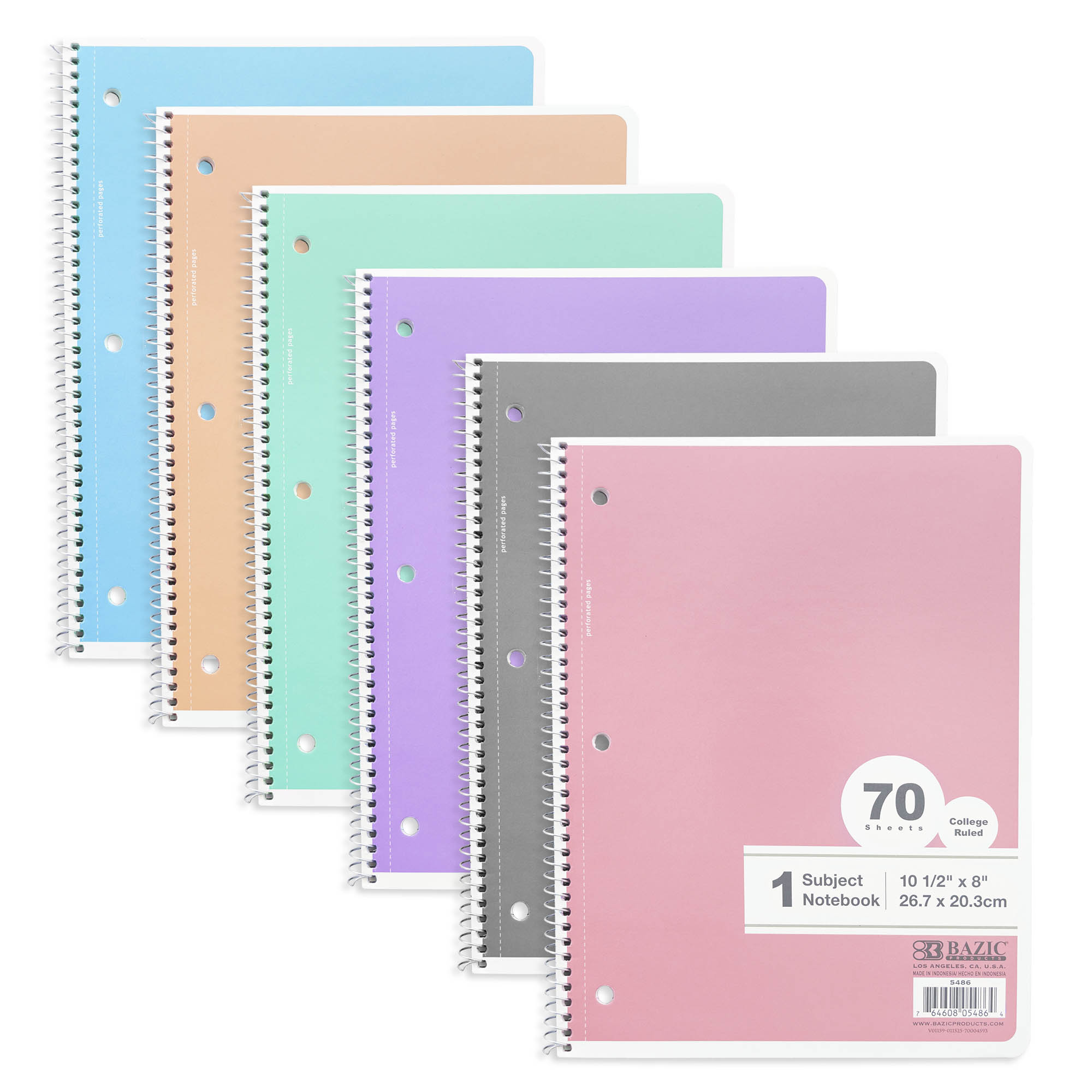 - SIMPLY NOTETAKING. 1-subject spiral notebooks come with 70 sheets of college-ruled paper. Each set comes with 6 assorted colored covers, 3-hole punched to fit in binder. Size: 10.5" x 8"inches.