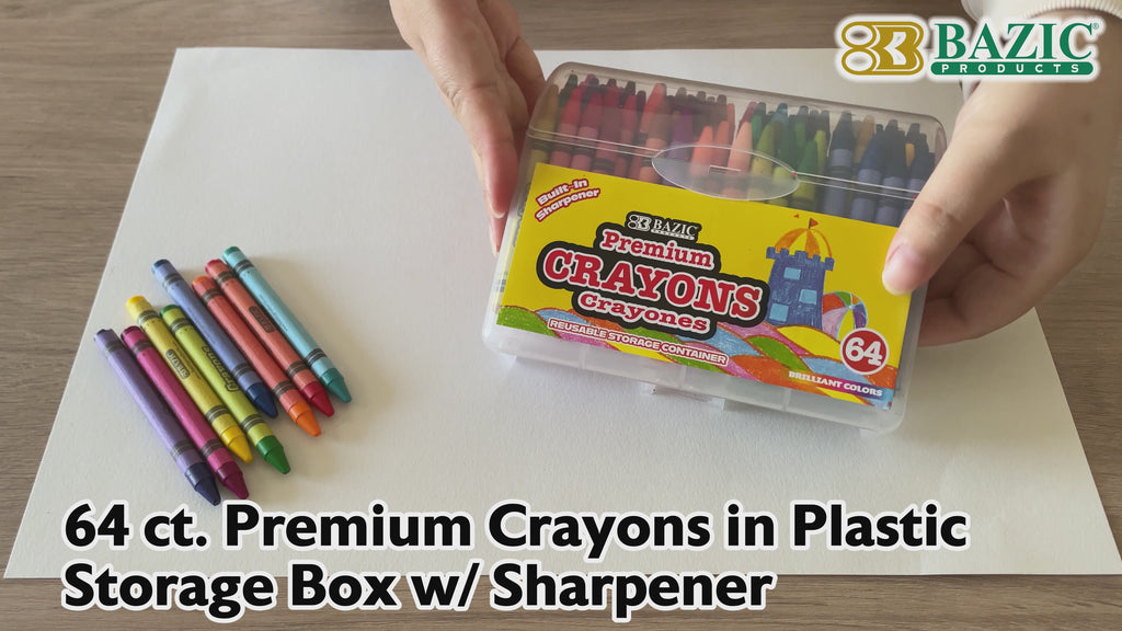 64 ct. Premium Crayons in Plastic Storage Box w/ Sharpener