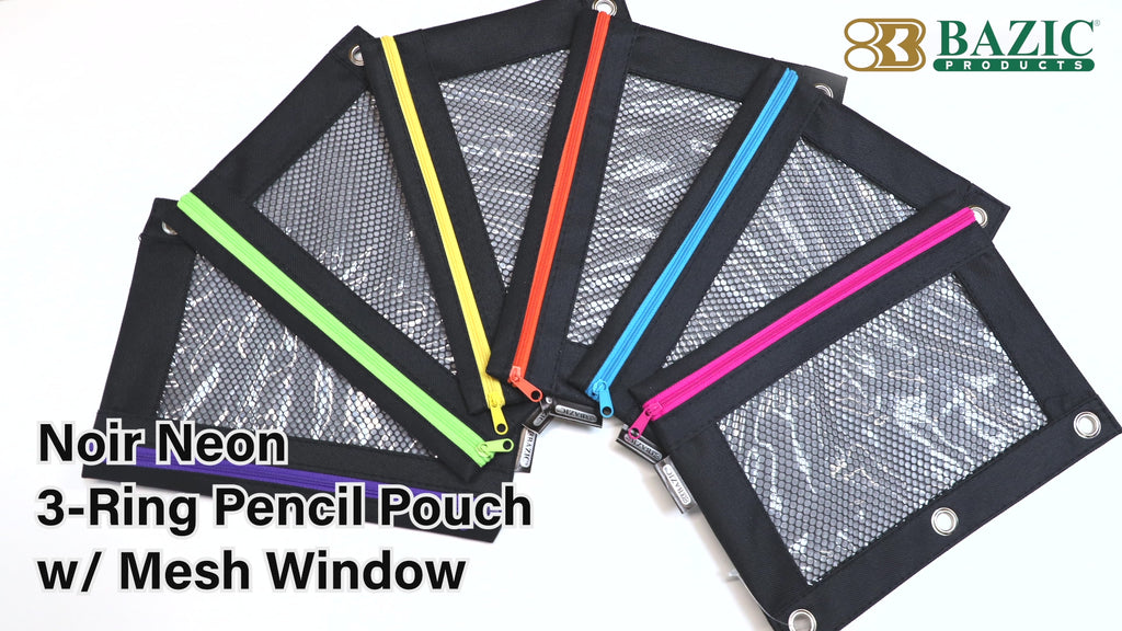 Pencil Pouch Neon Black 3 Ring Binder Pouch w/ Mesh Window