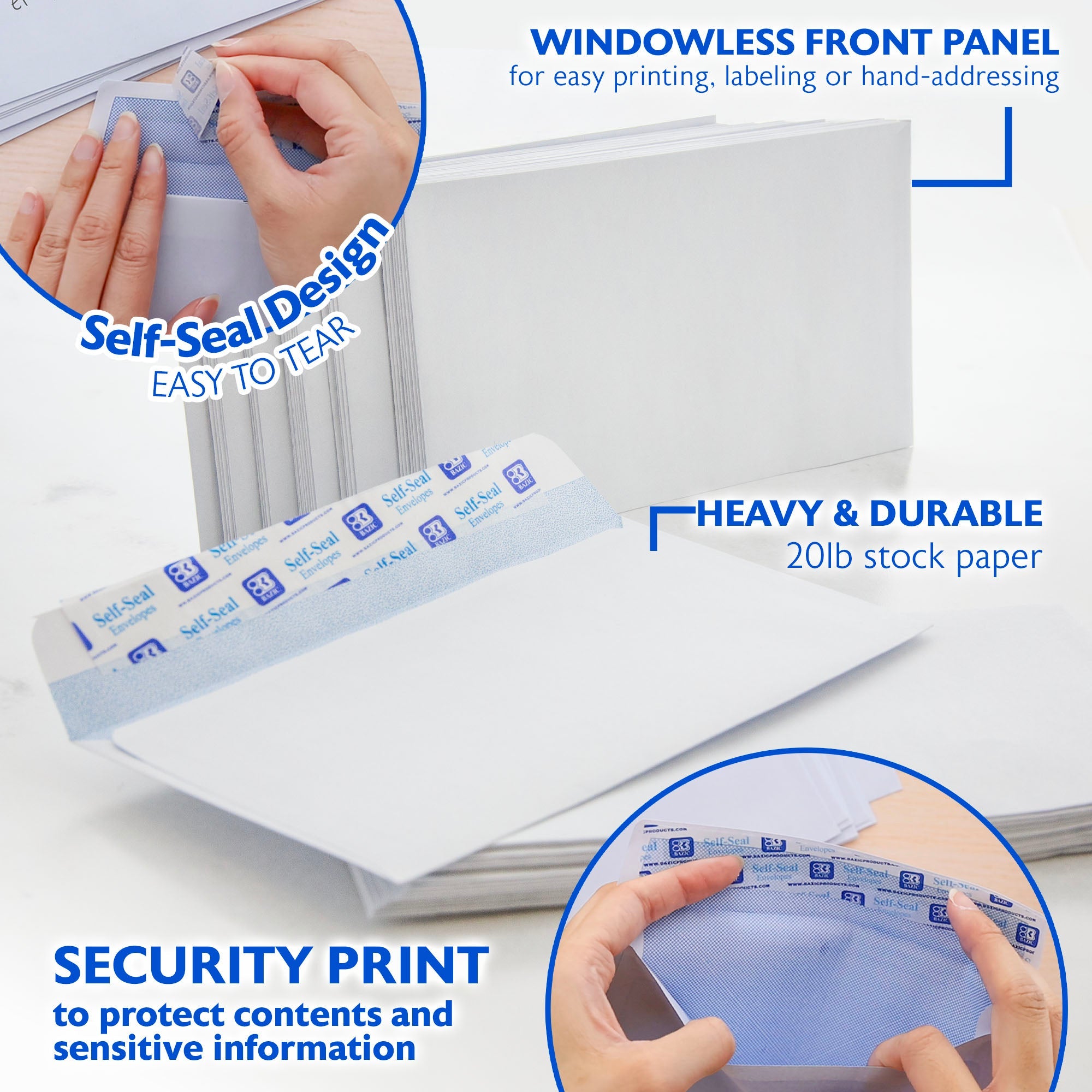 - SECURE. Just peel and seal to create a strong lasting seal without licking or moistening. Our self seal design is quick and easy and is guaranteed to stay sealed with no need for tape or glue sticks.