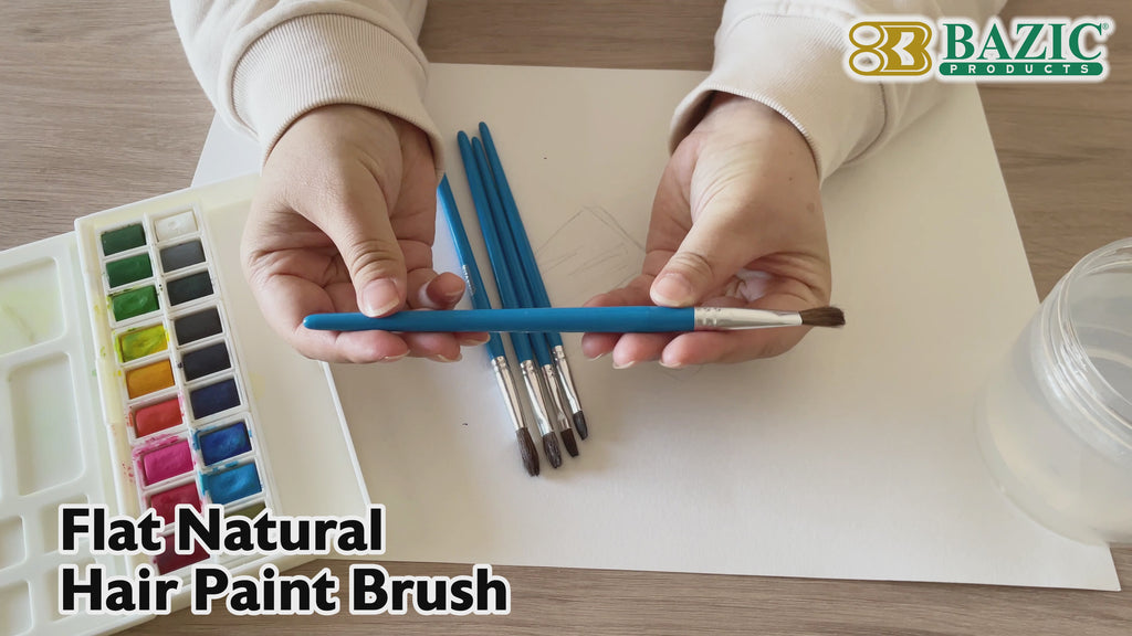 - ASSORTEDSize PAINT BRUSH. Flat natural hair set includes 5 brushes. Soft pony brushes are ideal for watercolor and acrylic paint for detailed work as they form a sharp point allowing precision painting.